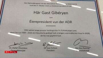 Fir den déngschteelsten Deputéierte Gast Gibéryen war et dëse Sonndeg dee leschten Nationalkongress a senger Funktioun. Hie geet d’nächst Woch jo an d‘Pensioun. Fir hie réckelt de Fred Keup an d’Chamber no. Den neie Chef vum Groupe parlementaire vun der ADR, de Fernand Kartheiser, huet um Nationalkongress am Numm vun der ganzer Partei de Gast Gibéryen perséinlech ugeschwat a geéiert.