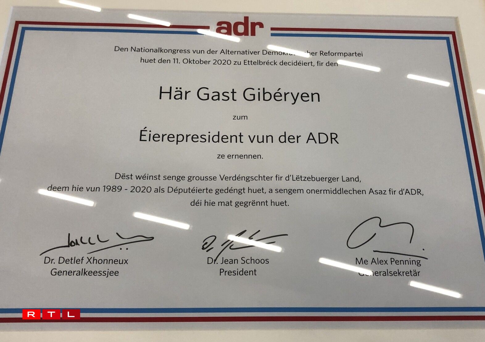 De Gast Gibéryen konnt d’Tréine vu Réierung net zréckhalen. Hien huet senge Parteikolleege “Merci” gesot a gemengt, d’Partei wier aktuell esou gutt opgestallt, dass se och ouni hien déi nächst Wale géif gewannen. D’Zil vun der ADR wier et dem Fernand Kartheiser no, national mat op d’mannst 5 Deputéierte Fraktiounsstäerkt z’erreechen an op EU-Niveau ee Vertrieder vun der ADR am Europaparlament ze kréien.