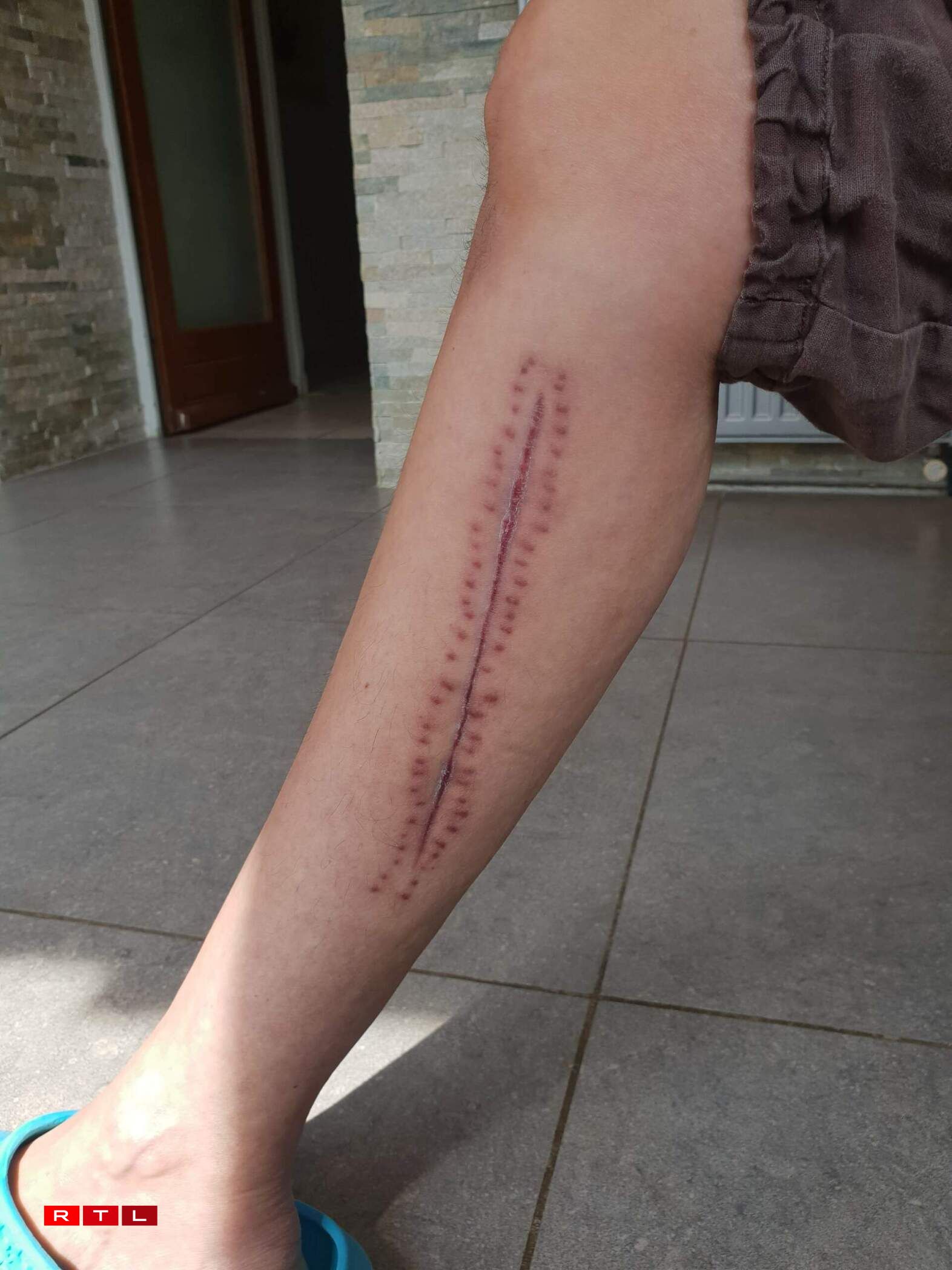 “An dunn hu si mech direkt gefrot, datt ech mäi Bee sollt beweegen, datt ech meng Zéiwe soll beweegen. An du krut ech erkläert, datt et en Accident gouf, datt ech de Bauch opgemaach krut. Ech hu mäi Bauch ugepaakt an dee war effektiv enorm a voll mat Plooschteren. An dunn hunn ech gesinn, datt ech 2 enorm Narbe bannen a baussen um Been hat, vu méi wéi 15 Zentimeter. An ech krut e bëssen erkläert, datt ech eng Arteerie duerchgeschnidde krut, just eng, ech krut net gesot, datt ech einfach keng eenzeg Ven an och keng Arteerie méi op der rietser Säit hätt, datt ech bal gestuerwe wier an datt ech Chance hätt, mat mengem Been z’erwächen, well mäi Been bal hätt missen amputéiert ginn.”
