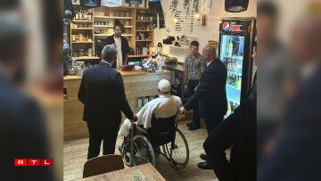 Begleet vu sengem Sécherheetspersonal, huet hie sech säin Espresso, wéi op de Fotoen ze gesinn ass, gemittlech schmaache gelooss, dat mat engem Glas Waasser dobäi. Dëst ass natierlech en aneren, ongewinnten Ubléck, wann ee bedenkt, wéi ee Sécherheetsdispositiv fir déi offiziell Visitten am Asaz war. Den André Ribeiro, Mataarbechter am Café um RTL-Mikro, war sichtlech iwwerrascht iwwert de geeschtleche Besuch.
