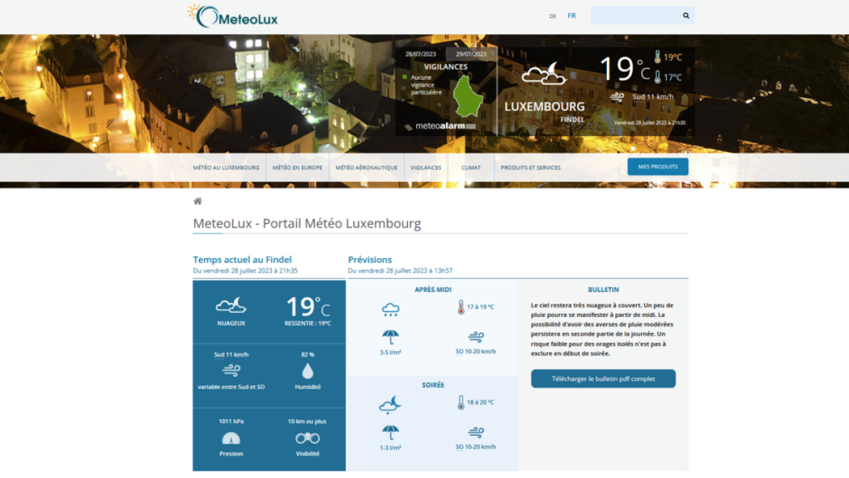 Déi neist Previsiounen an aktuell Warnunge konnte weiderhin iwwer d’mobil Applikatioun vu MeteoLux consultéiert ginn. Elo ass dat dann och nees iwwert d’Internetsäit méiglech.