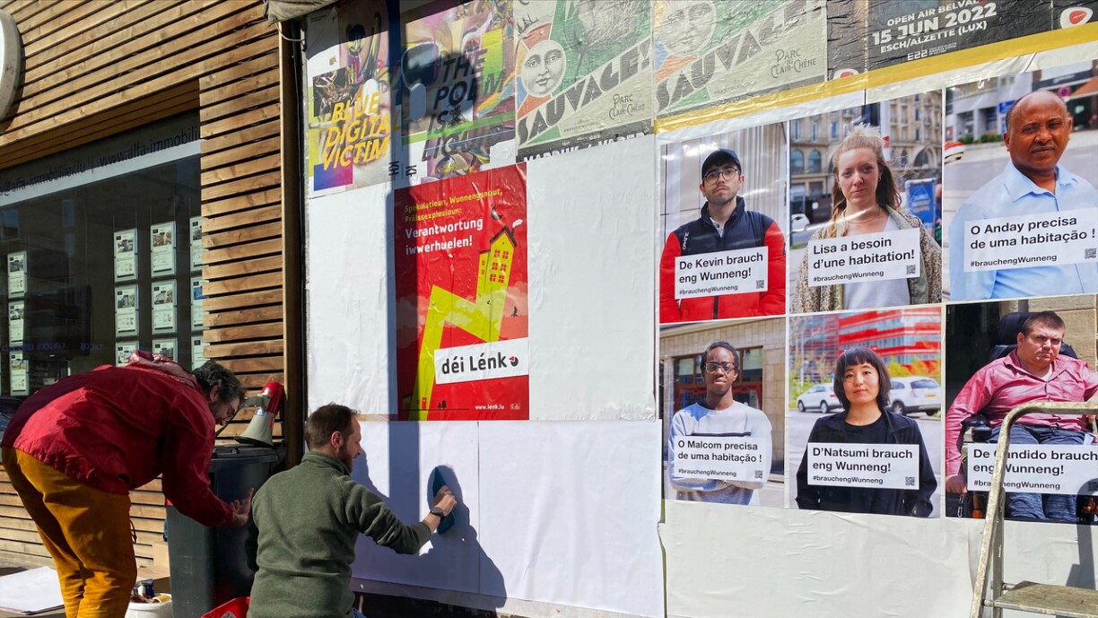 Virun engem onbewunnten Haus am Zentrum vun der drëttgréisster Stad, dat amgaangen ass ze verfalen, hu si Flyer verdeelt an Affichen un d’Haus gepecht. Op dëse si Portraite vu Leit ze gesinn, déi eng Wunneng brauchen. Et ass net déi éischt Aktioun, déi si an där Form maachen. An net déi lescht.