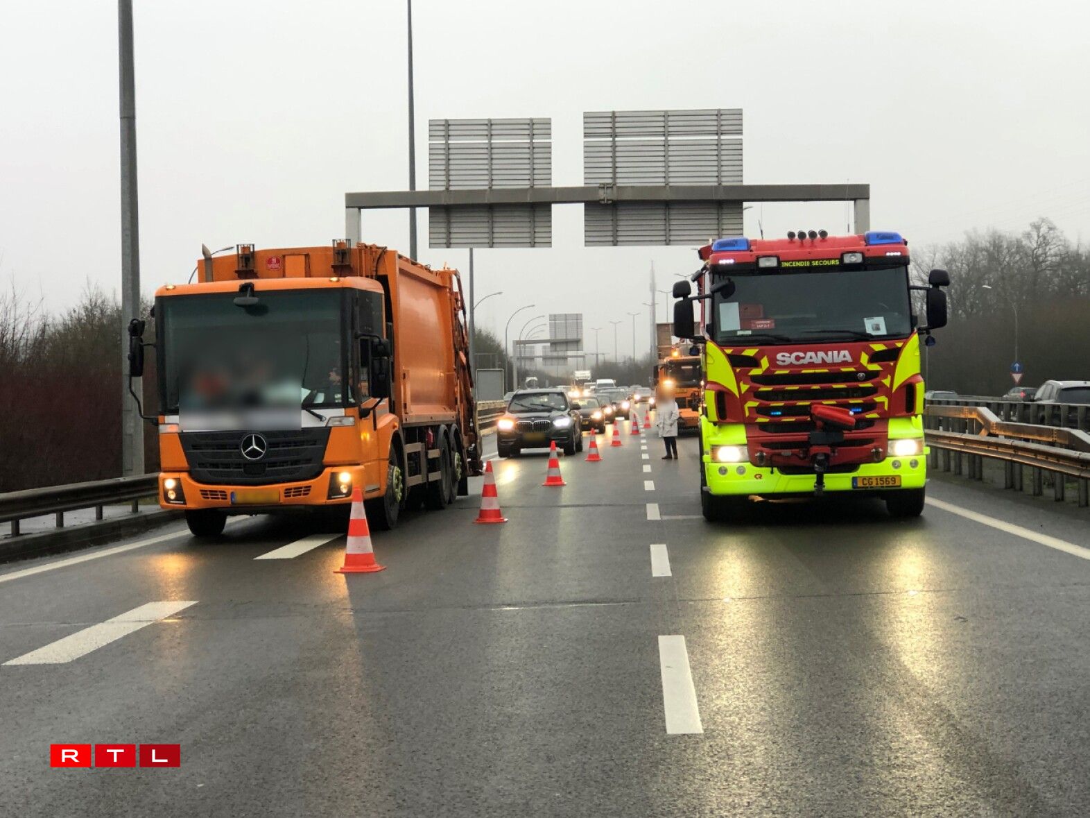 Den Accident mat méi Gefierer ass géint 12.15 Auer op der Tréierer A1 a Richtung Belsch geschitt, tëscht dem Houwalder Tunnel an dem Gaasperecher Kräiz. De Chauffer vun engem Camion krut um Enn vun engem Stau d’Autoen ze paken.