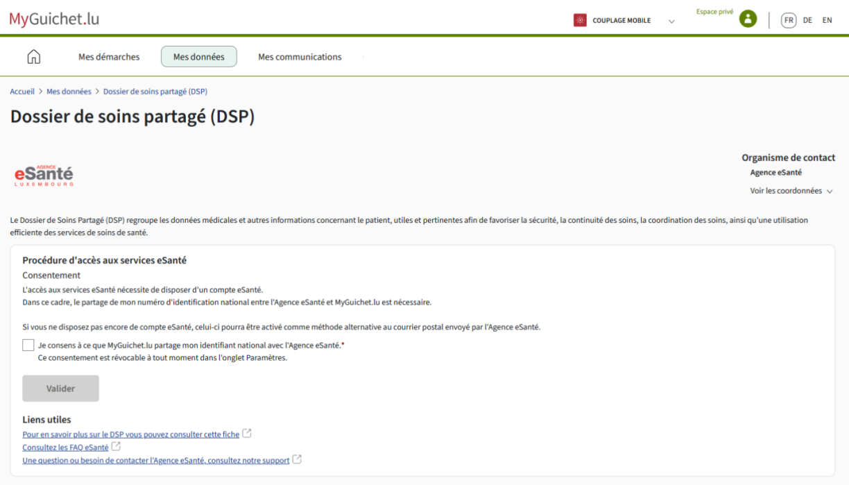 Bierger kënnen hire eSanté-Kont online aktivéieren an direkt op hire perséinleche Patientendossier zougräifen – ouni op e Code per Post ze waarden. Néideg sinn LuxTrust-Authentifikatioun an en privaten Espace op MyGuichet.lu. Alternativ bleift den Zougang iwwer esante.lu oder d’App MyDSP méiglech.