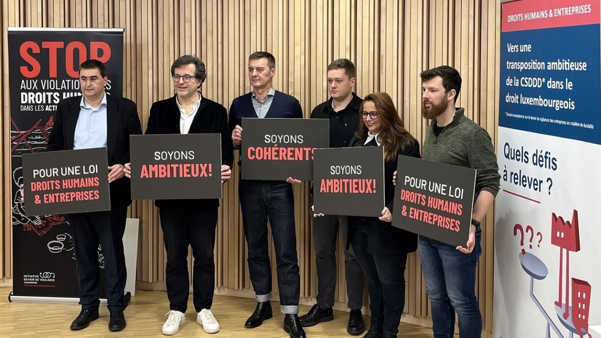 “Si ass amgaangen, liichtfankeg hiren eegenen Erfolleg vum Green Deal eeben op d’Spill ze setzen. Nohaltegkeetsspillreegele sollen opgemaach ginn a sollen iwwerkuckt ginn.”, sou de Jean-Louis Zeien, Co-Coordinateur vun der Initiativ “Devoir de vigilance” deen an der Suite däitlech Wieder fënnt: “Et geet duer mat ‘Business First’ an de Liwwerketten op Käschte vu Mënscherechter, Klima an Ëmwelt.”