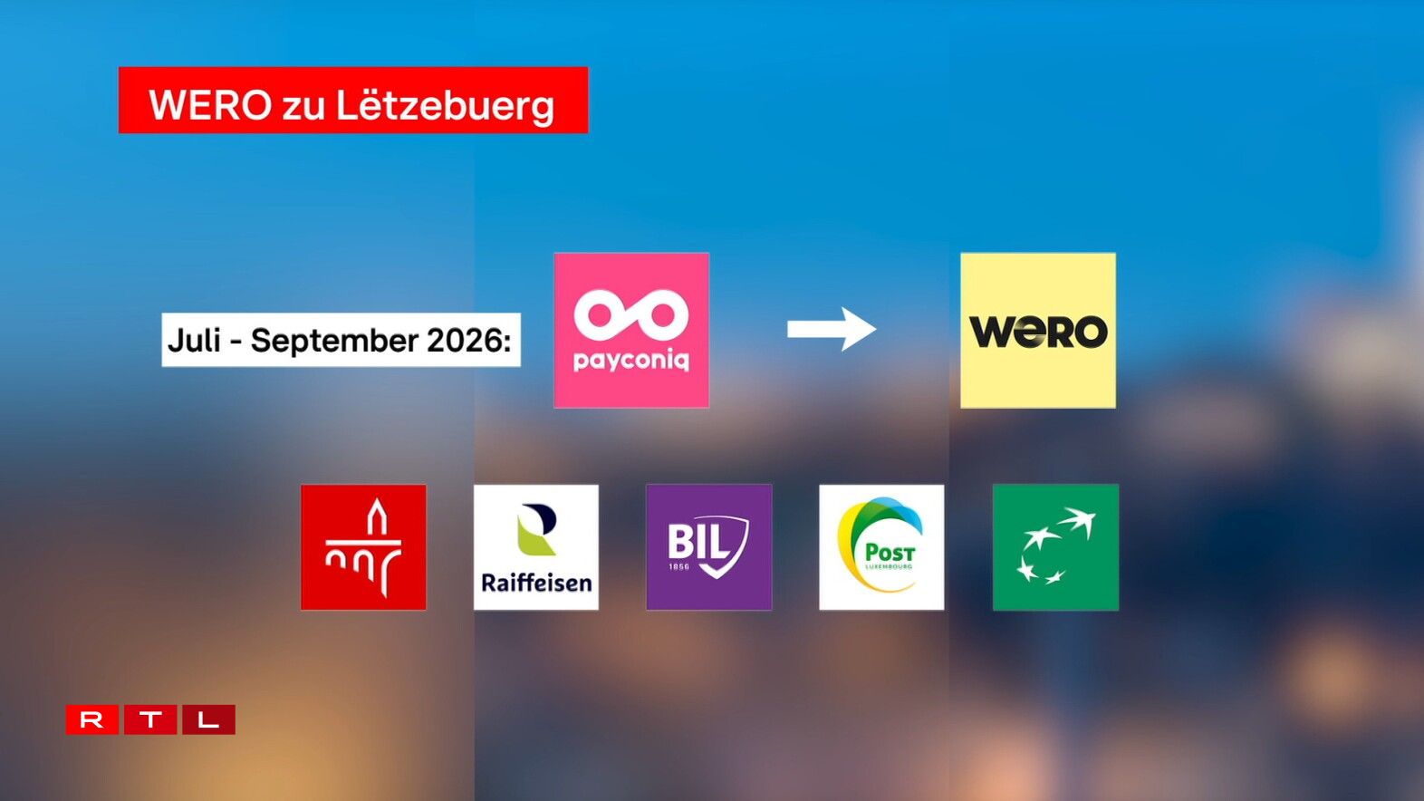Änlech ewéi Payconiq oder de Virgänger Digicash, kann ee mat Wero direkt Iwwerweisungen iwwer den Handy maachen oder Rechnunge mam QR-Code bezuelen. Mam Ënnerscheed, datt et sech hei ëm eng europäesch Léisung handelt, déi och schonn an eisen Nopeschlänner Belsch, Frankräich an Däitschland benotzt gëtt. No enger Transitiounsphas vun dräi Méint, soll Payconiq dann Enn September definitiv der Vergaangenheet ugehéieren. Elo awer scho funktionéiert Payconiq a vereenzelte Commercen net méi.