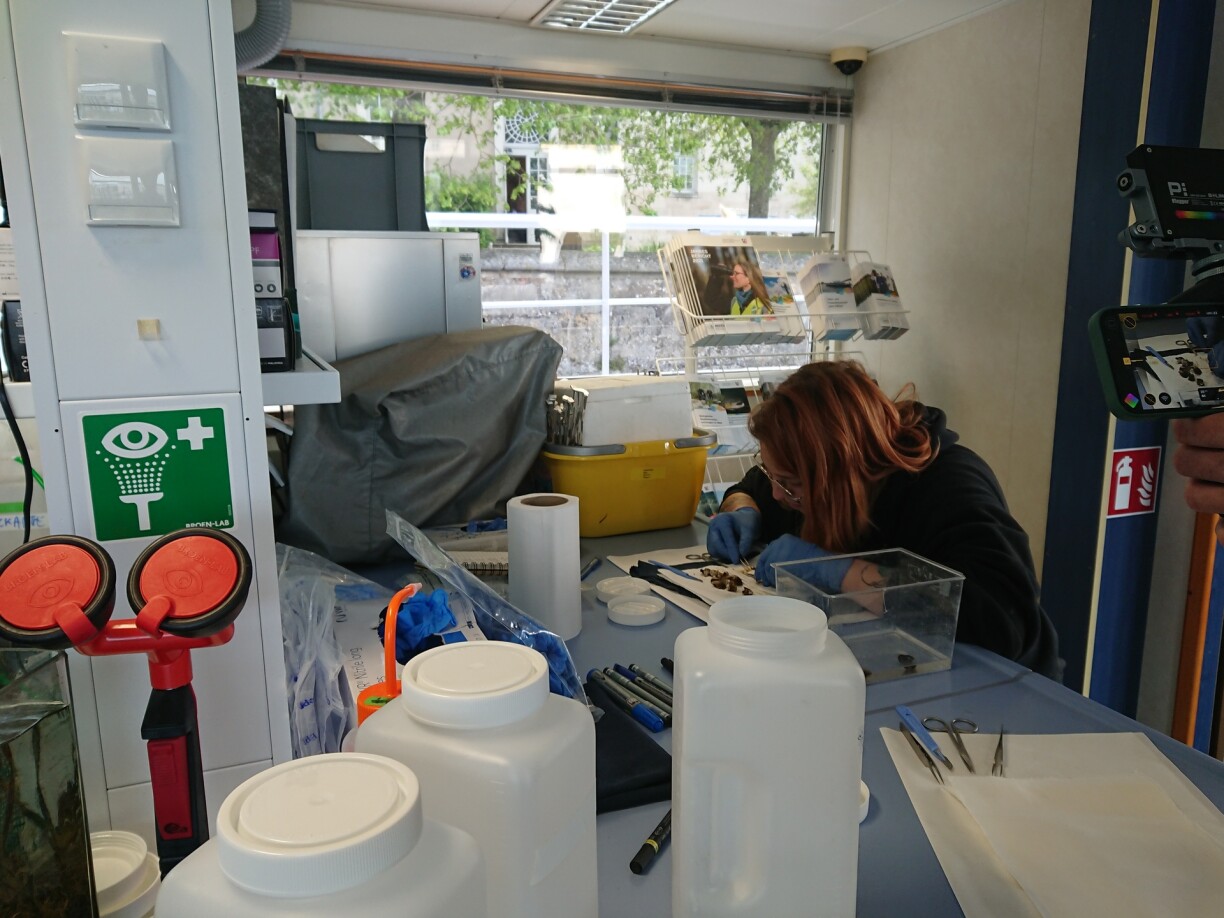 An deem heite Fall ginn awer weder Waasser nach Sedimenter geprouft, mee Moulen. Méi spezifesch d’Dräikantmuschelen. Et wëll een nämlech kucken, wat fir en Impakt déi sëlleg Schuedstoffer am Waasser op d’ Organisme kënnen hunn. D’Muschele wieren dobäi e gudden Indice fir den Zoustand vum Waasser, well si et filtréieren.