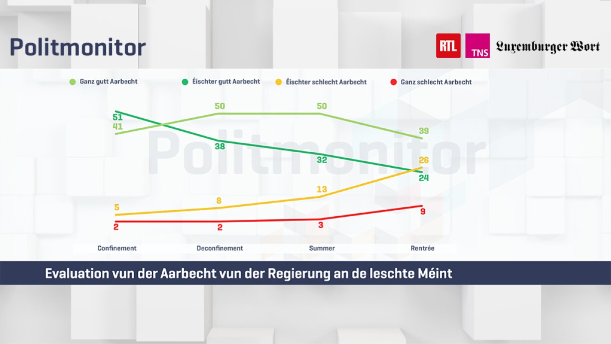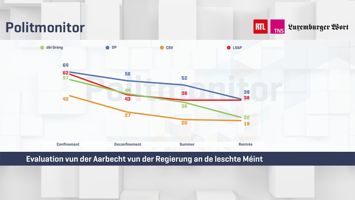 Ënner anerem dat ass aus dem neie Politmonitor vun TNS Ilres zeréckzebehalen, deen am Optrag vun RTL an dem Lëtzebuerger Wort realiséiert gouf.
