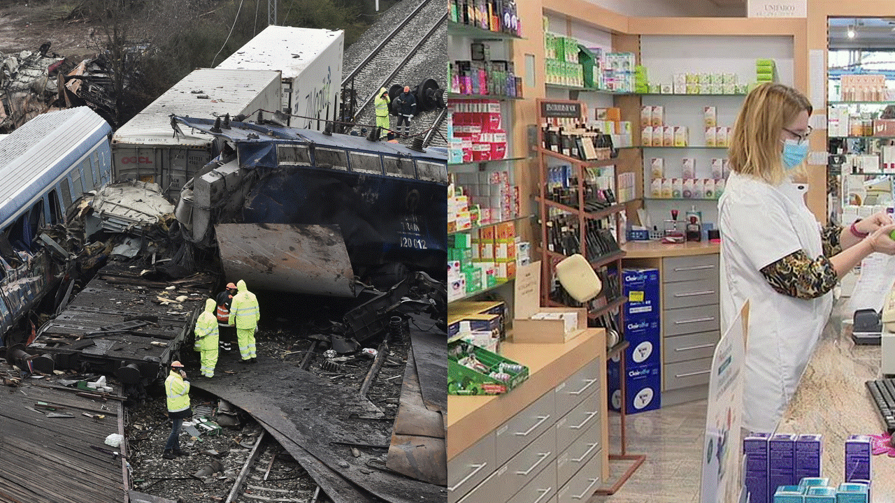 A Griicheland koum et zu engem schwéieren Accident tëscht zwee Zich. Dëst huet op d’mannst 57 Persounen d’Liewe kascht (Stand 3. Mäerz). D’Regierung huet staatlecht Versoen agestanen. Nom Accident sinn a Griicheland d’Leit op Stroosse gaangen an vill Eisebunner hu gestreikt, fir op de schlechten Zoustand vum Zuchreseau an d’Aarbechtskonditiounen opmierksam ze maachen.