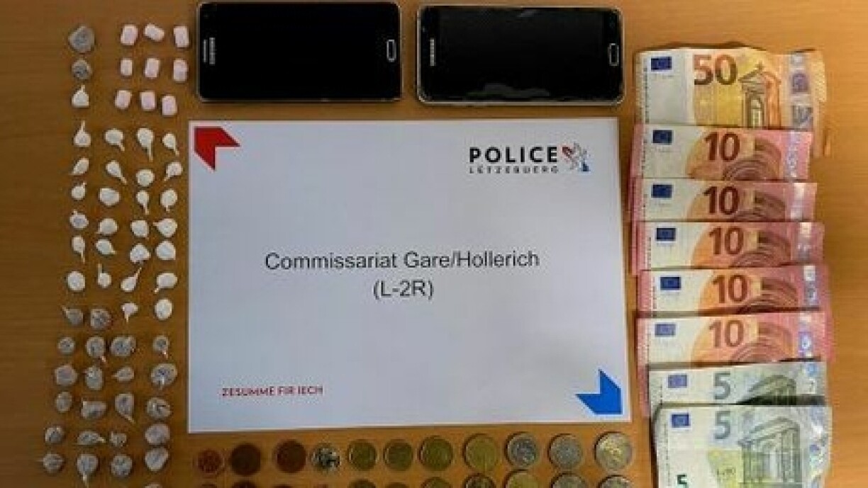 Wéi eng Patrull zu Zéisseng e Chauffer wéinst senger Fuerweis kontrolléiert huet, war deem säin Drogentest positiv ausgefall. Am Kader vun der weiderer Kontroll huet den Automobilist de Polizisten eng Tut mat ronn 1 Kg Marihuana ginn. Weider hunn d’Beamten eng gréisser Zomm Boergeld an eng Drogewo séchergestallt. Op Uerder vum Parquet gouf de Mann festgeholl a koum virun den Untersuchungsriichter.