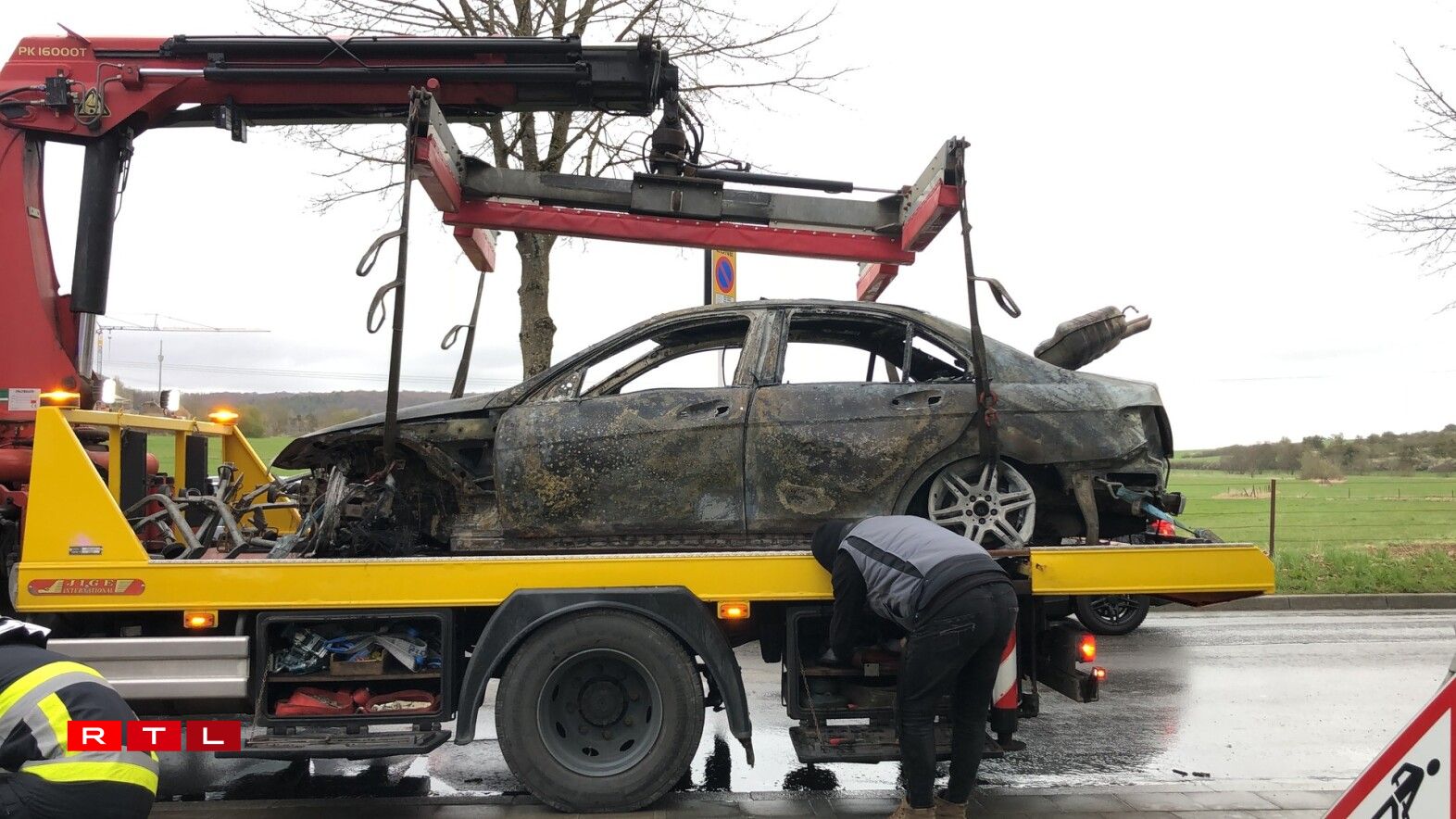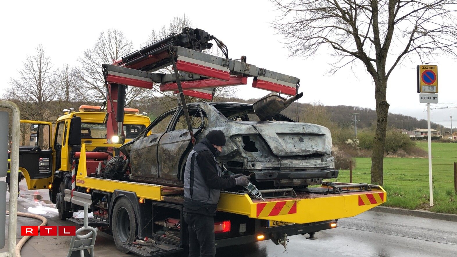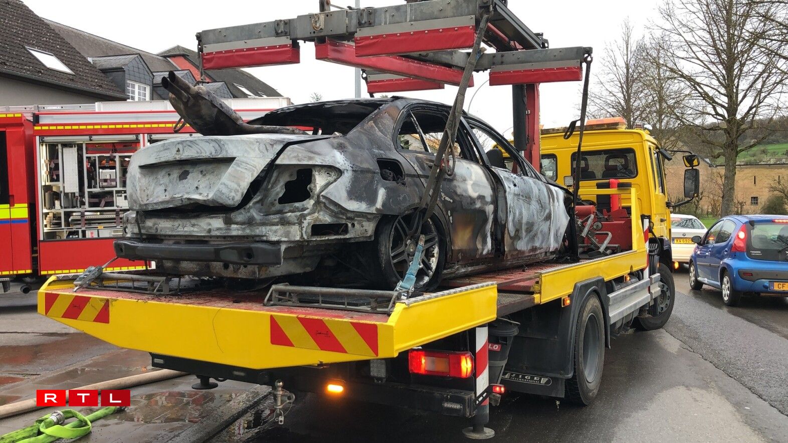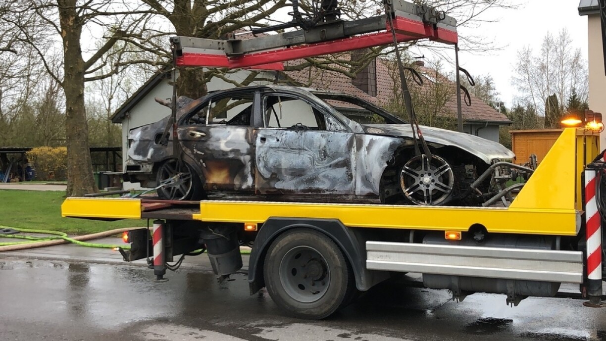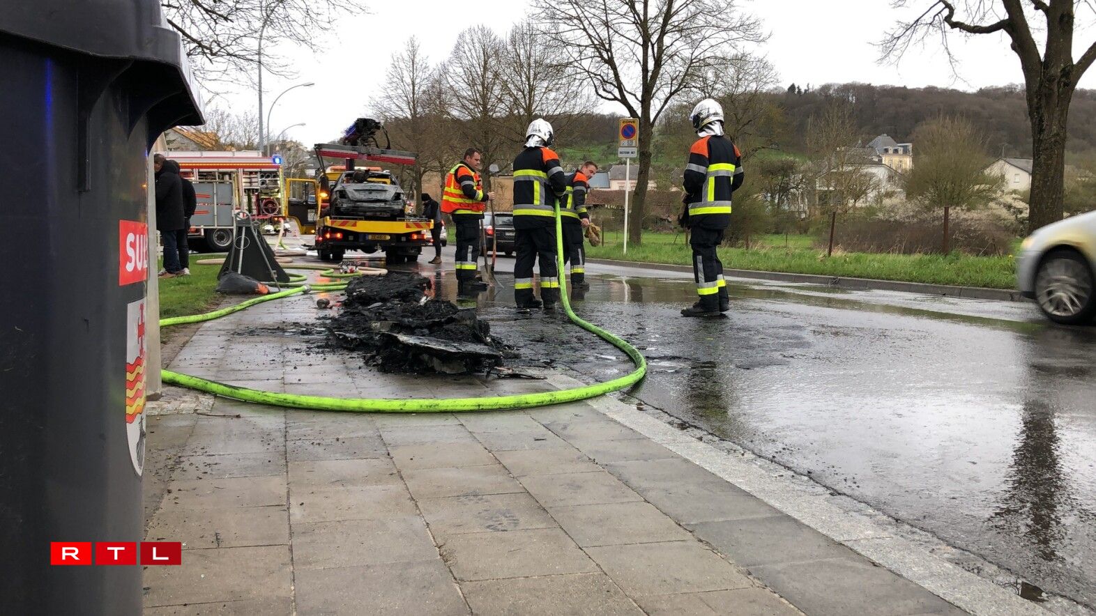 En huet d’Pompjeeë geruff, ma wéi déi bis op der Plaz waren, stoung den Auto scho komplett a Flamen. Den Auto ass bis op de Blech erof ofgebrannt. Et gouf kee blesséiert. D’Pompjeeë vun Éiter waren am Asaz.