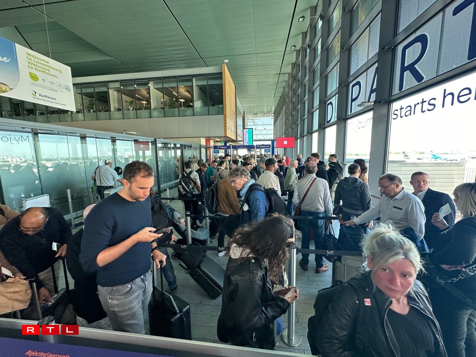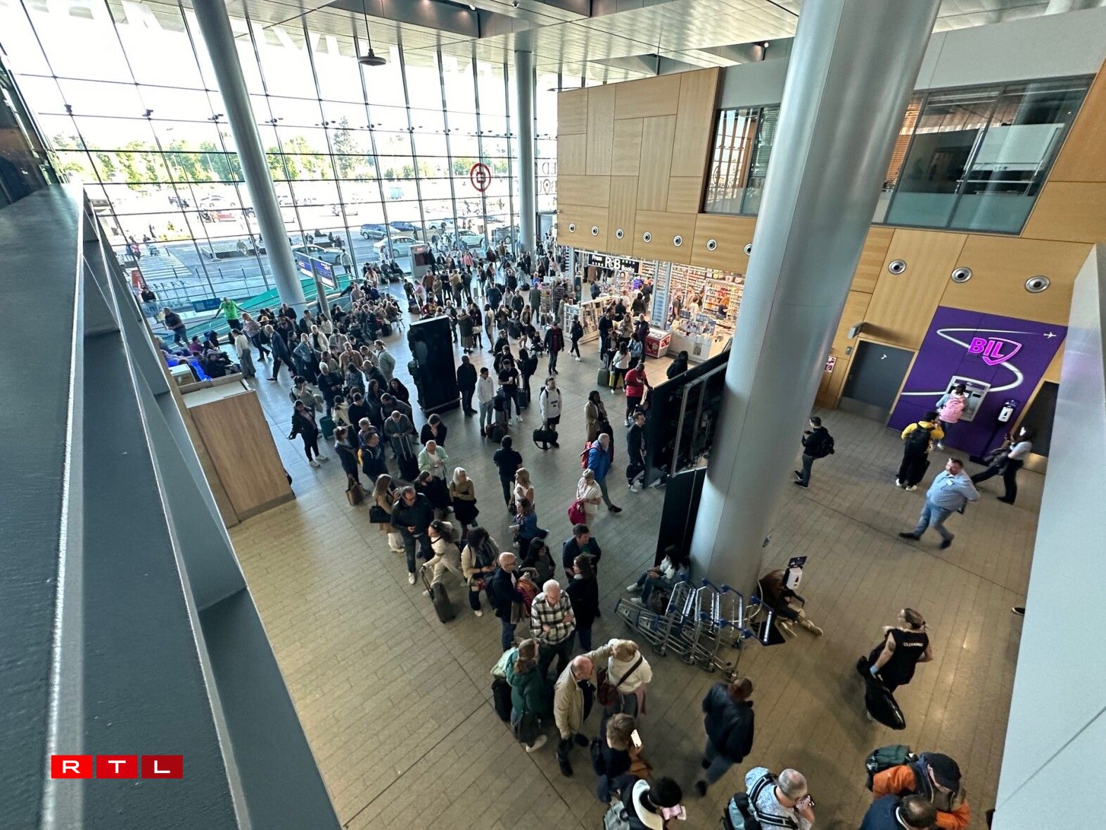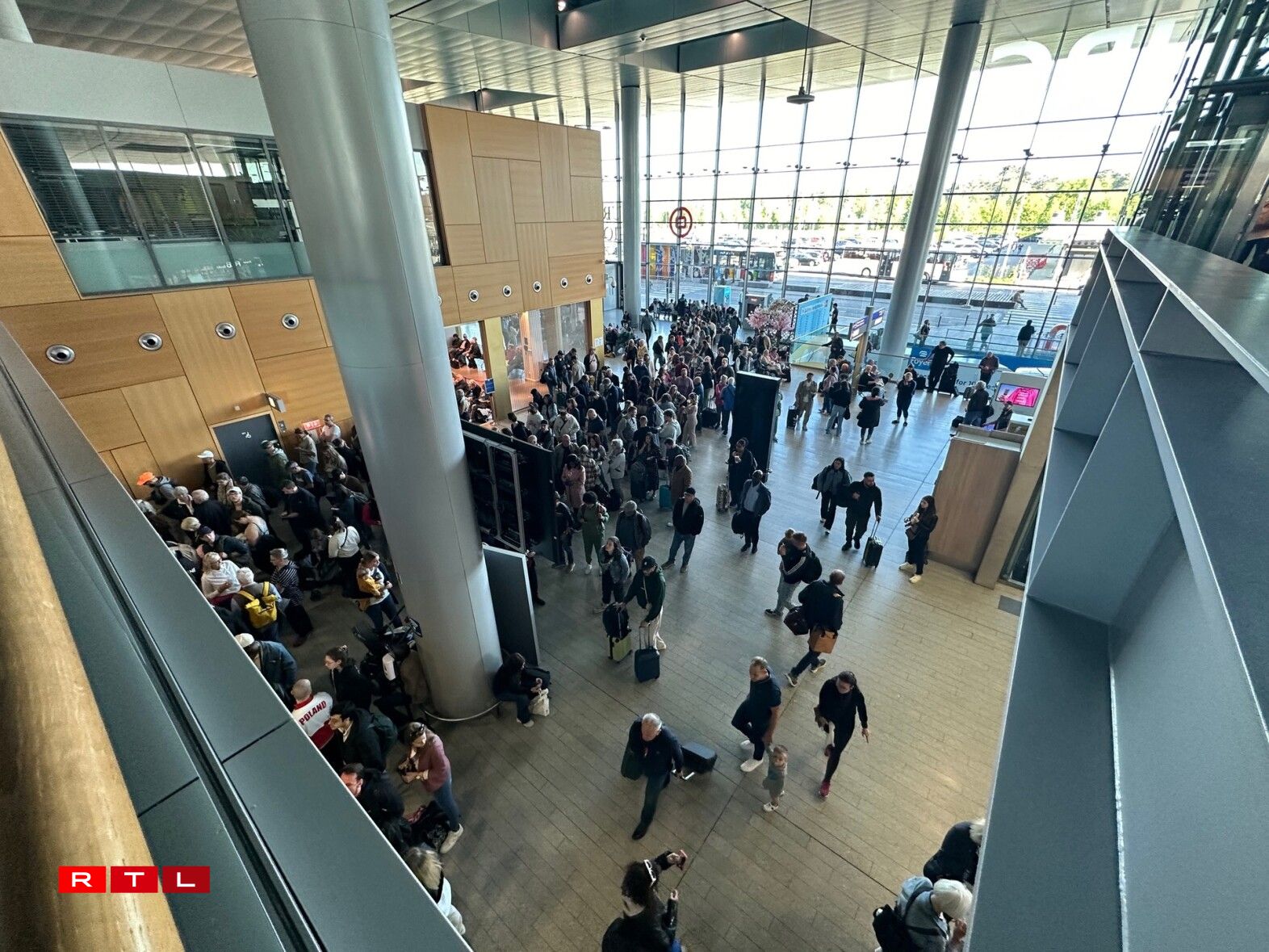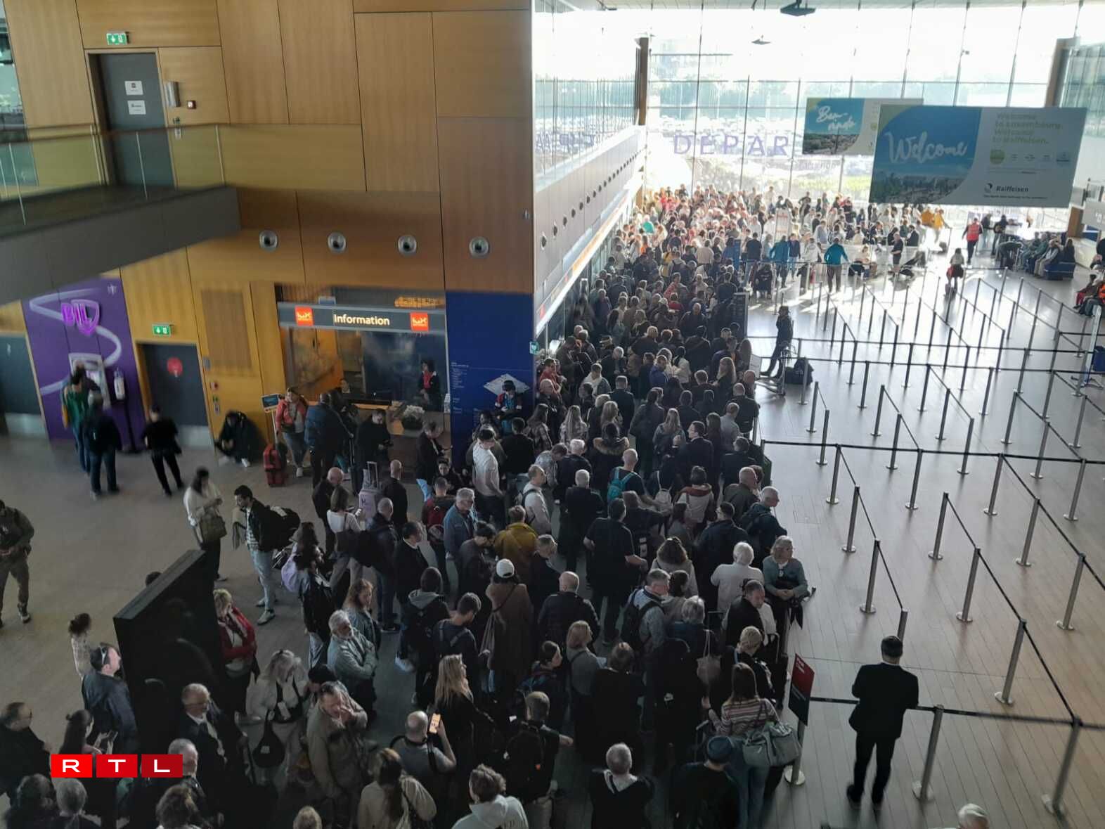 All d’Persounen, déi e Freideg de Moie schonn duerch d’Sécherheetskontroll gaange sinn, hunn dëst eng zweete Kéier musse maachen, dat well et Problemer mam Sécherheetssystem gouf. Eng 800 Leit wieren RTL-Informatiounen no betraff. Dësen technesche Problem huet och dozou gefouert, datt um fréie Moie keng Fligere konnten de Findel verloossen, well d’Passagéier net u Bord konnte goen. Eleng bei der Luxair sinn duerch dëse Problem iwwer 20 Flich betraff.