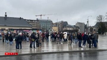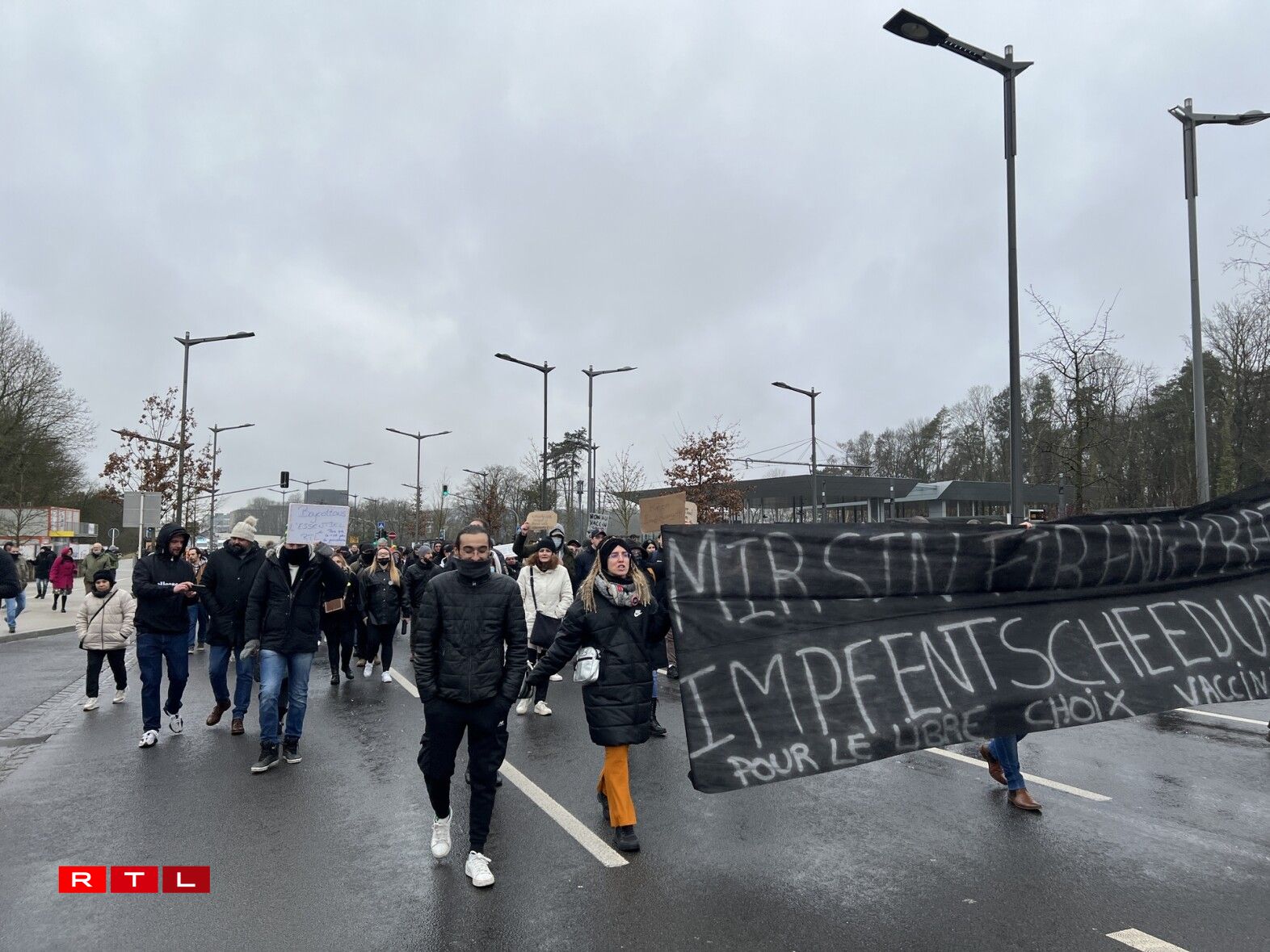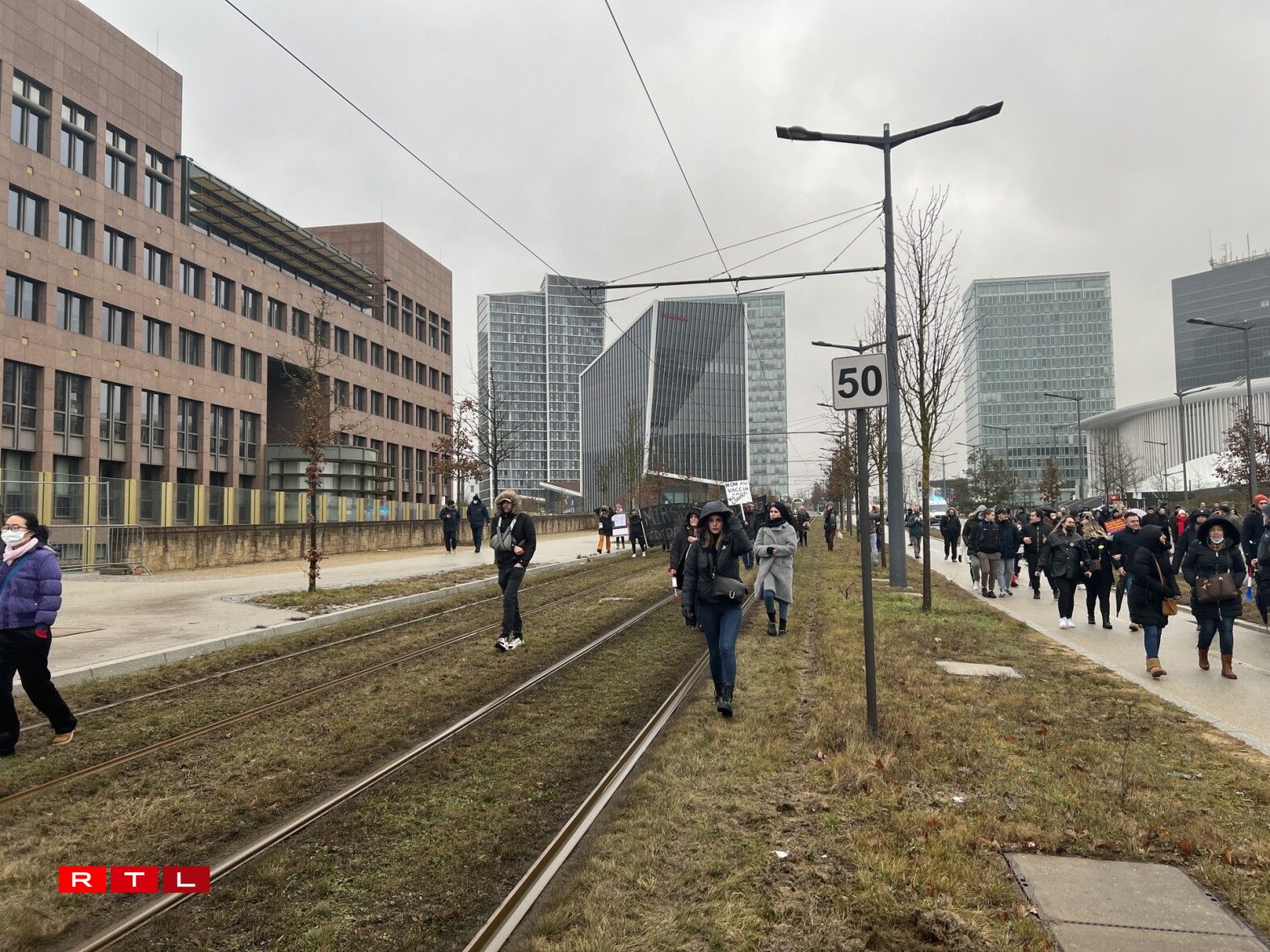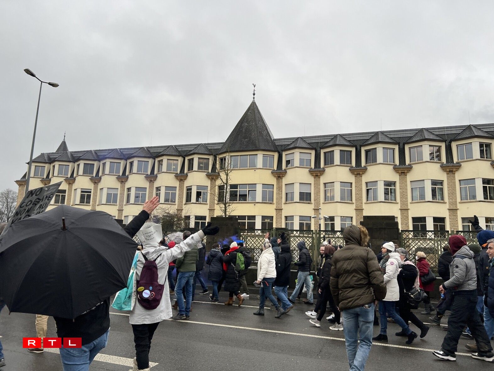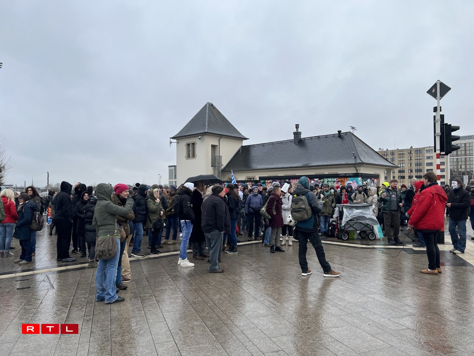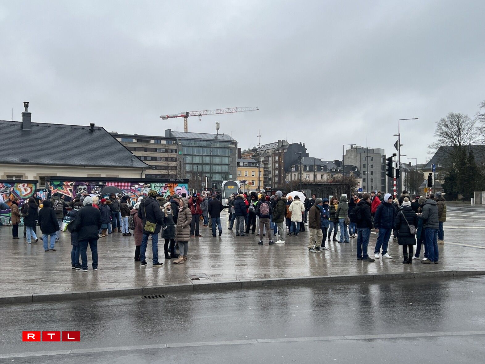D’RTL-Journalisten hu kuerz no 14 Auer eng ronn 100 Leit gezielt, déi hire Cortège am erlaabte Perimeter tëscht dem Glacis an der Philharmonie maachen, also iwwert d’Rout Bréck. Déi Zuel huet sech awer bis 15 Auer ongeféier verdräifacht.