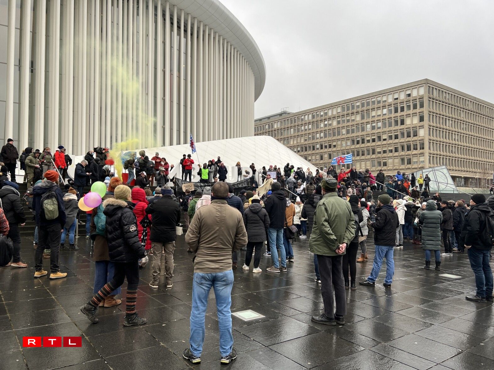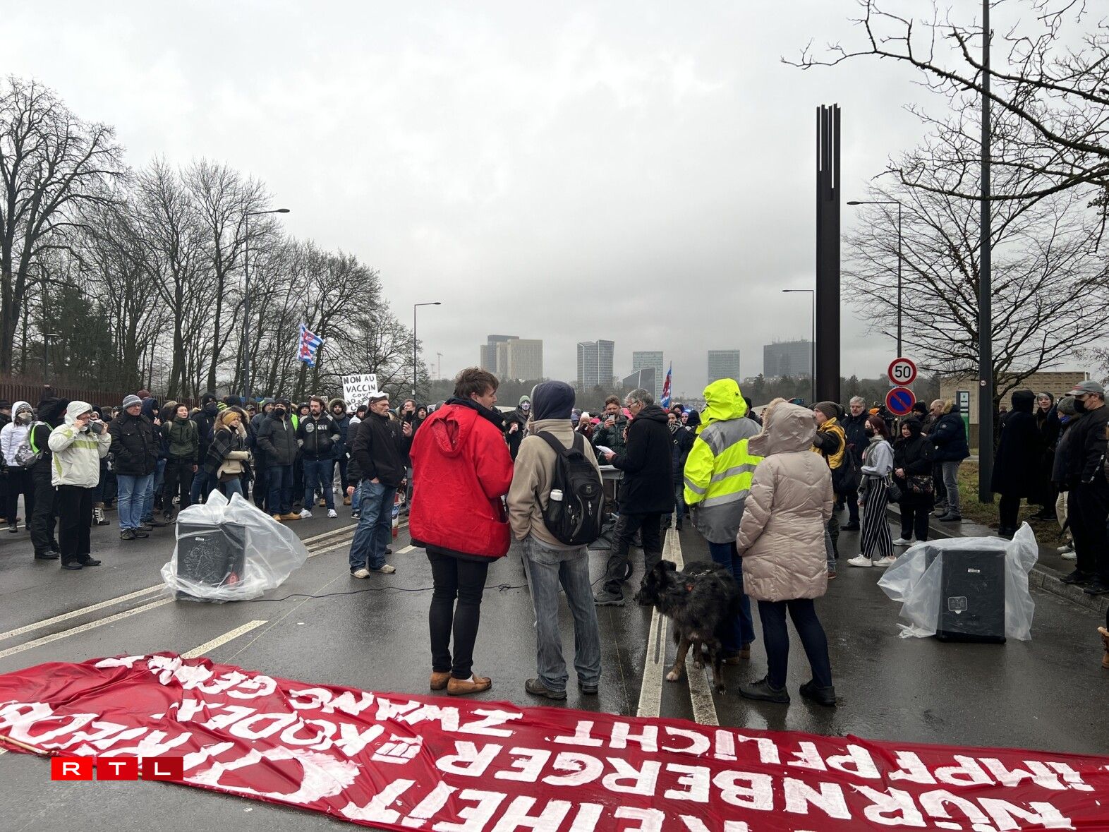 Géint 15.15 Auer koum d’Meldung, datt den Trafic a Richtung Stad erëm op wier. Kuerz drop hu sech d’Manifestante virun der Philharmonie versammelt. Bis zu deem Ament war alles roueg bliwwen.