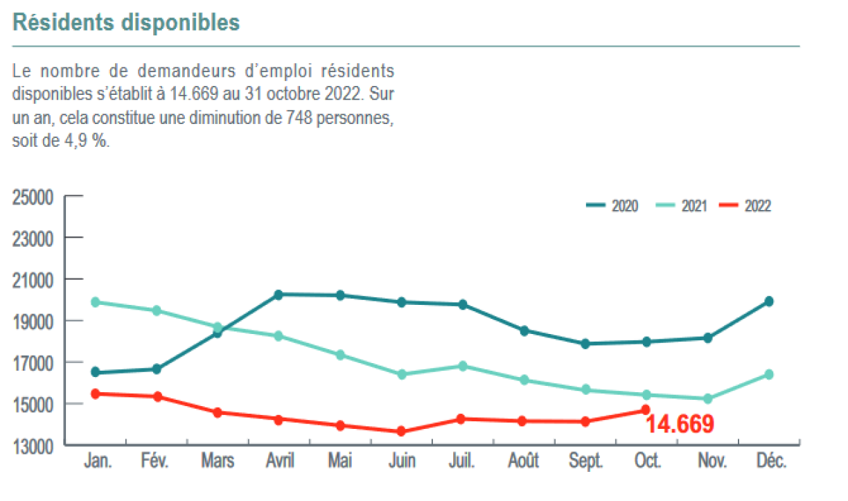 Och déi nei Inscriptioune sinn ëm 13 Prozent eropgaangen. De Chômagetaux bleift awer bei 4,9 Prozent. Am Joresverglach sichen iwwerdeems manner Leit no enger Aarbecht. Am Oktober goufen 3.284 fräi Poste bei der ADEM deklaréiert, 16 Prozent manner wéi am Oktober 2021. Betraff sinn d’Constructioun, den Horeca-Beräich an och d’Interimairen.