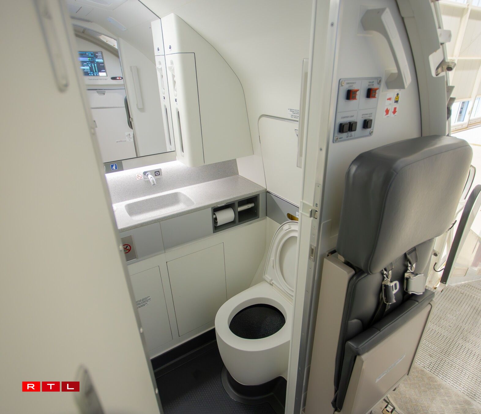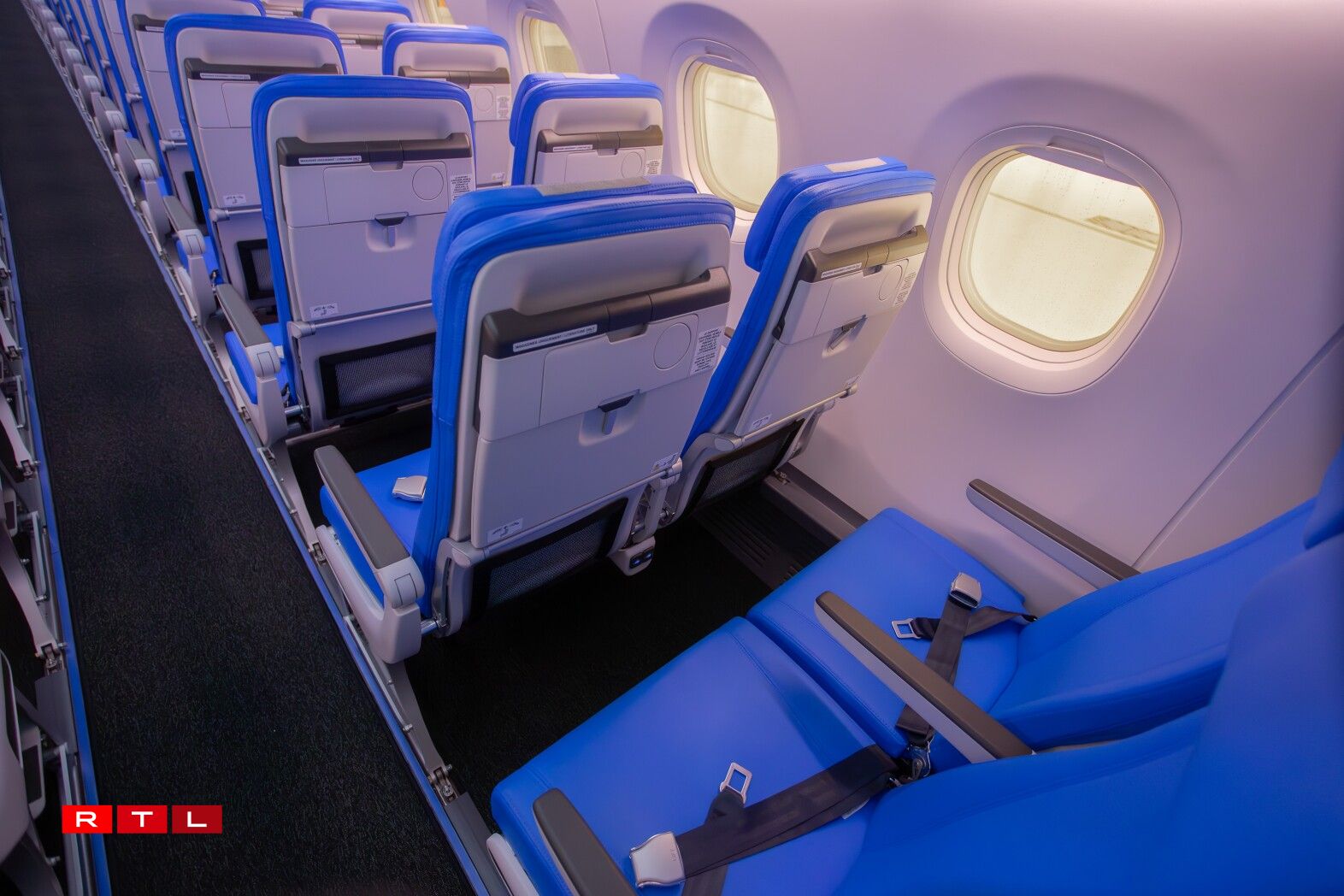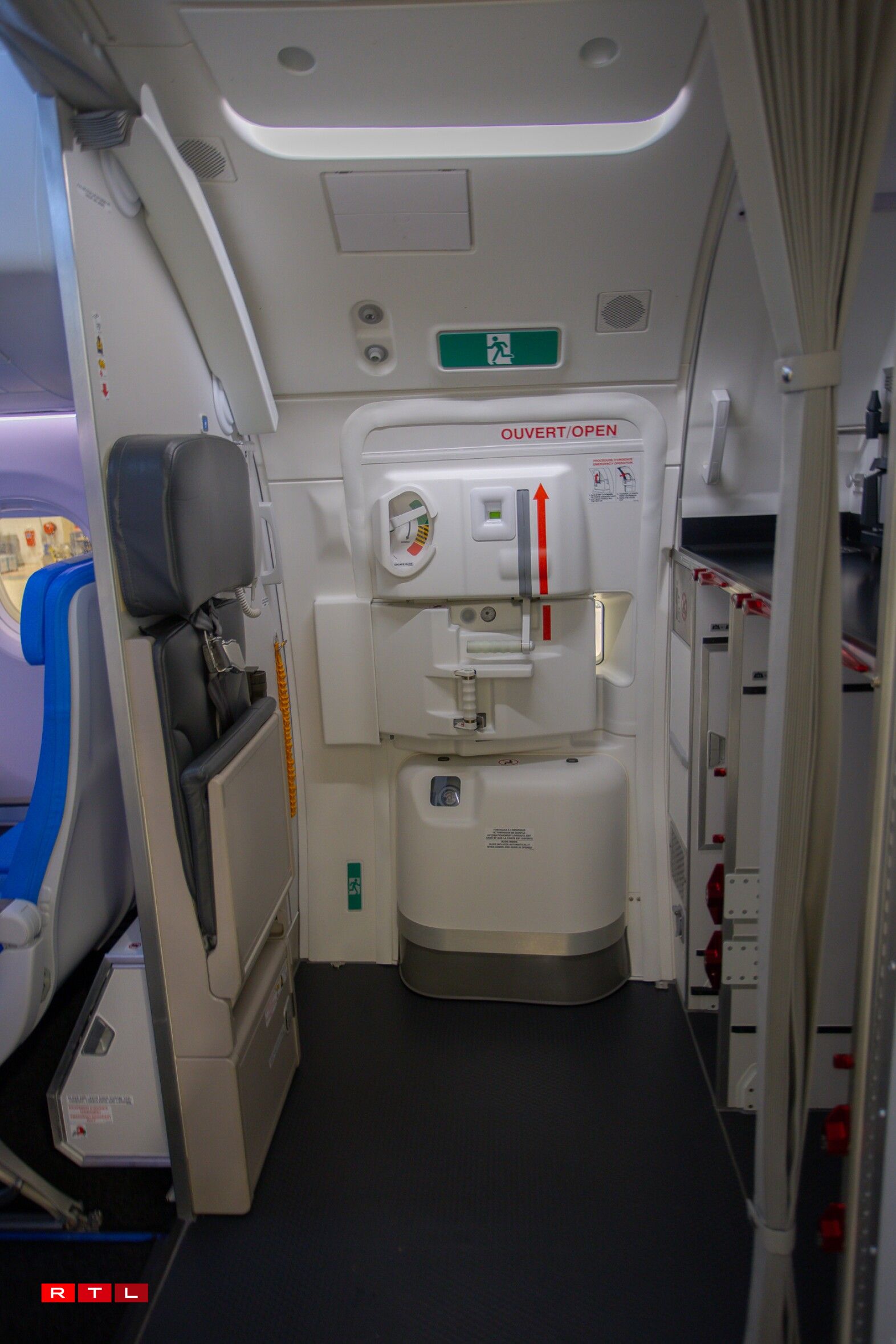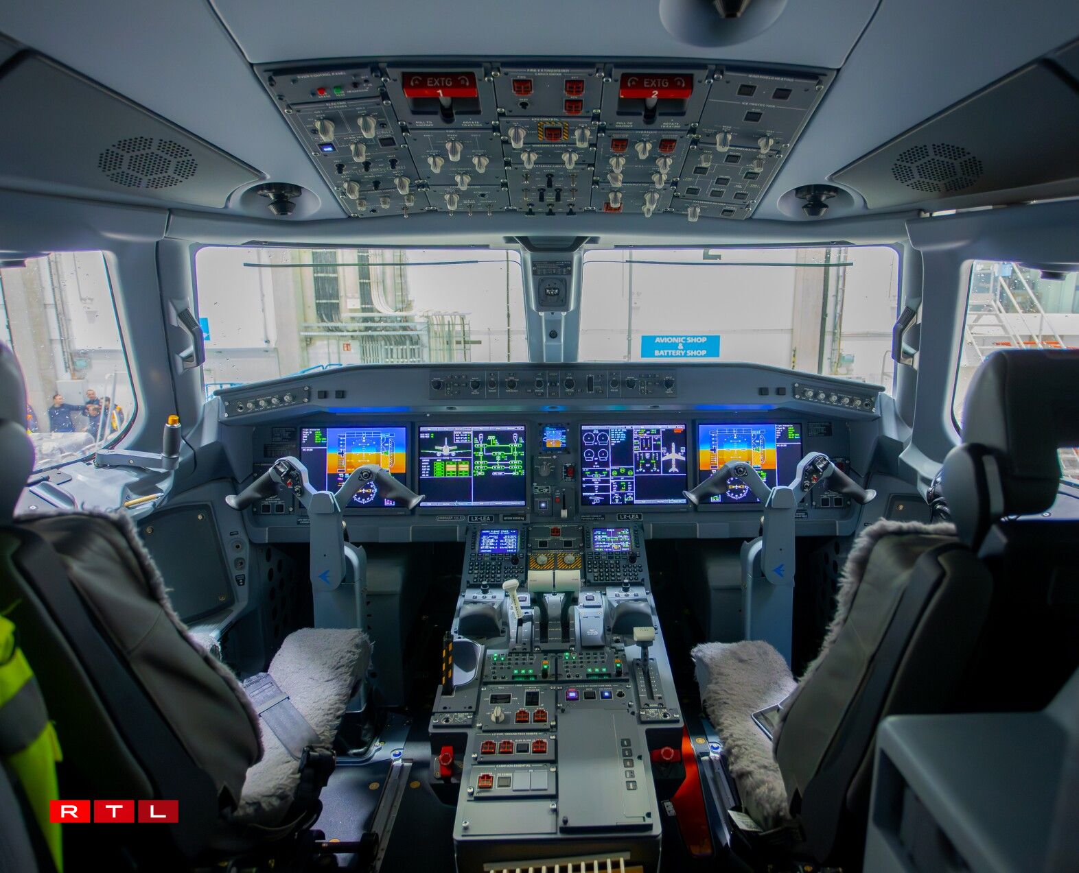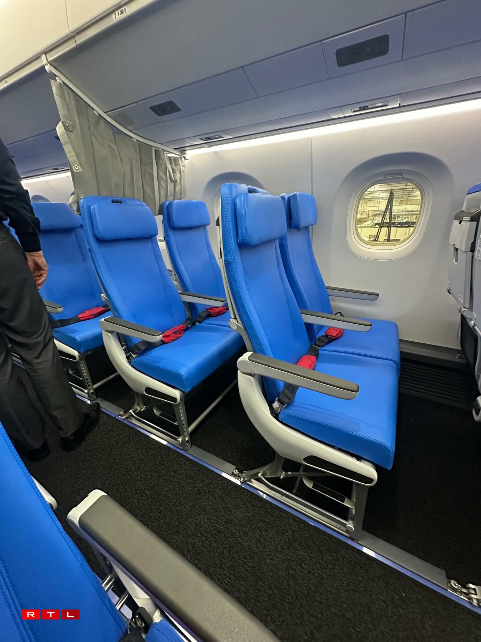 15.000 Nitten an 90 Kilometer Kabel si verschafft ginn um 35 Tonne schwéiere Koloss. An anescht, wéi mol bei aneren Hiersteller, géing de Fliger hei fir d‘éischt vu bausse lackéiert ginn. Souwuel baussen, wou een elo déi genee selwecht Faarwen, wéi déi vum Lëtzebuerger Fändel hätt, wéi och bannen, wier et der Luxair wichteg, hir nei Identitéit ze weisen, déi sech nach méi mat hirer Lëtzebuerger DNA ervirhieft. An déi dem Client och bannen de gréisstméigleche Confort bitt.