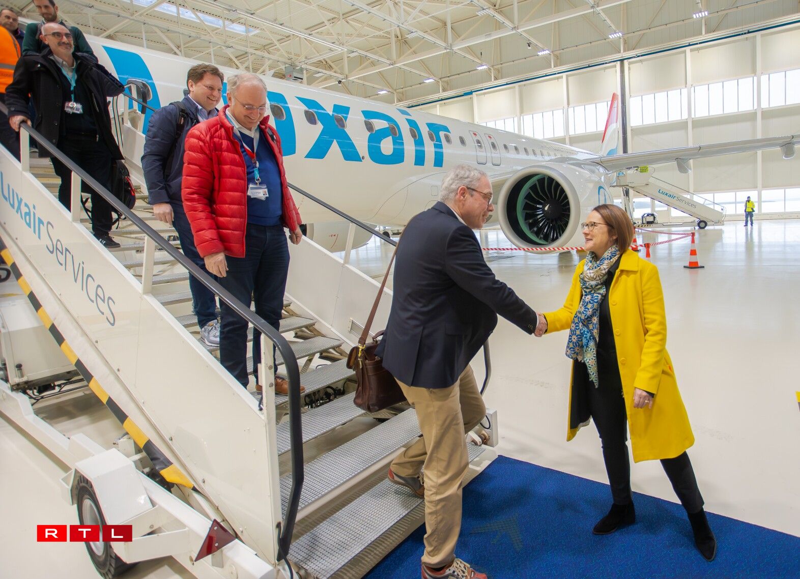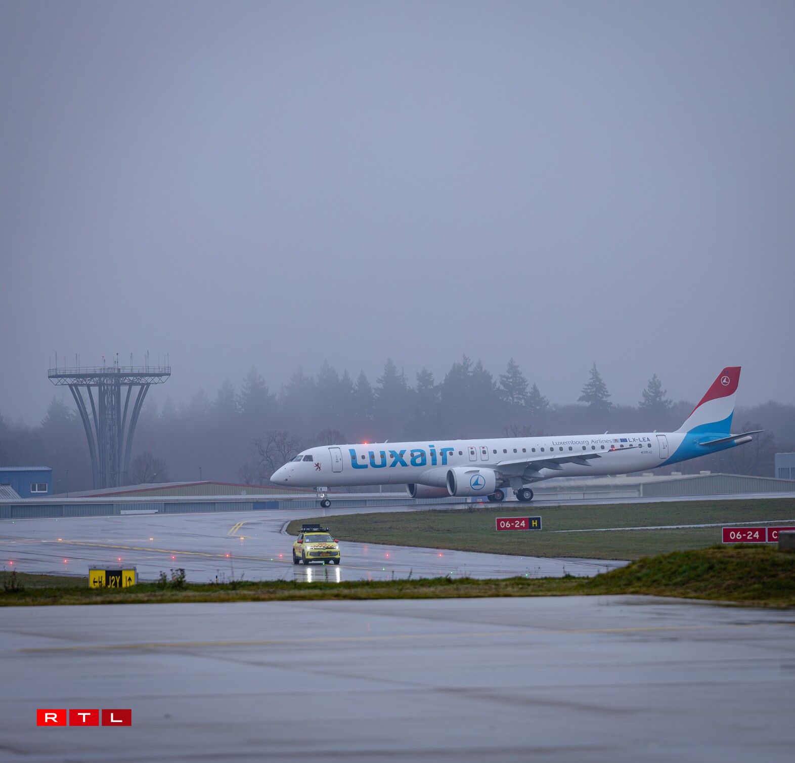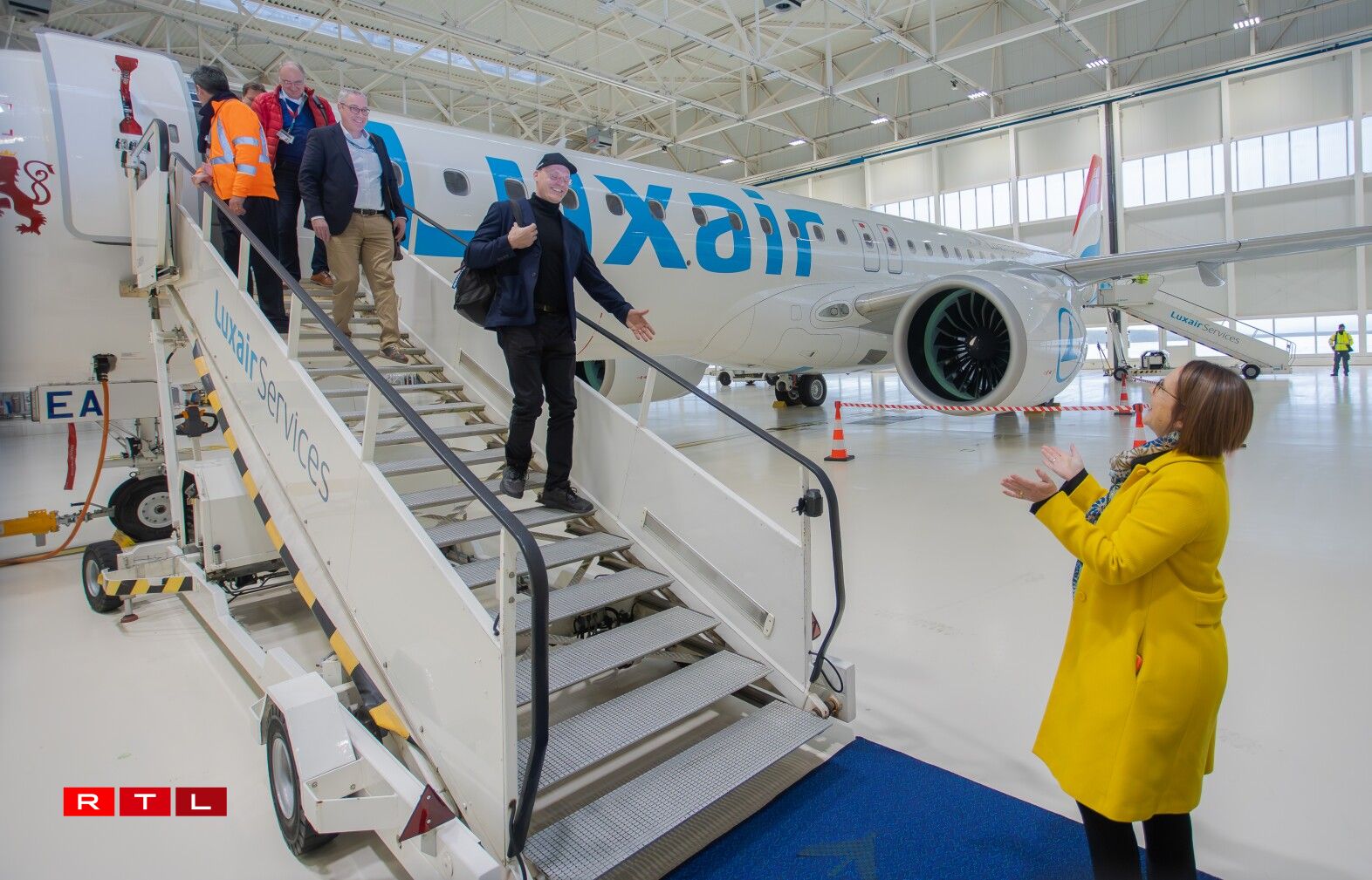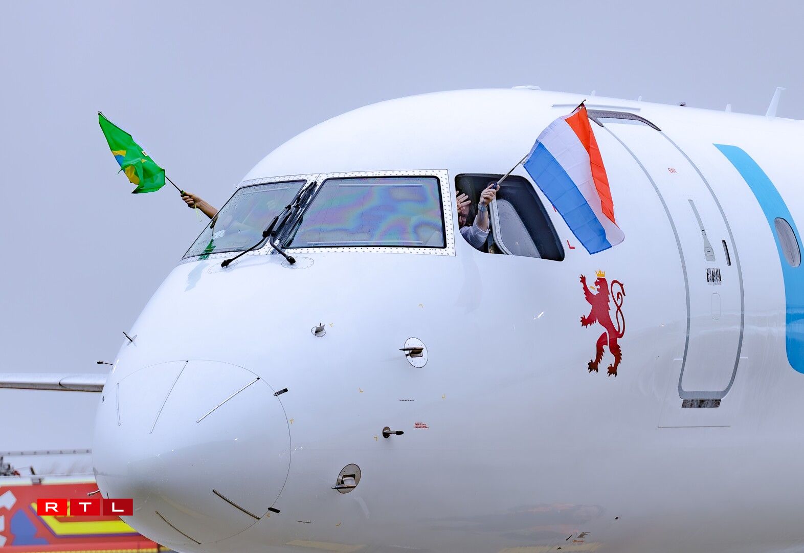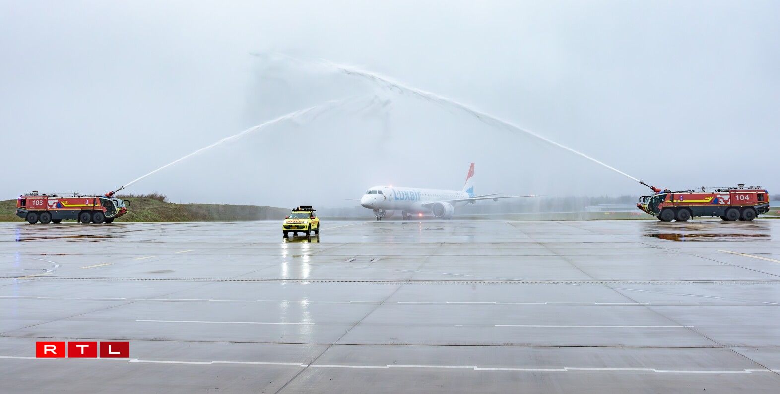 Den éischte vun am Ganze 6 nei-bestallte Fligeren ass dëse Samschdeg zu Lëtzebuerg ukommen. Empfaange gouf den neien E195-E2-Fliger a Presenz vun der Mobilitéitsministesch Yuriko Backes. Ufank 2026 soll d’Maschinn an de reguläre Betrib goen.