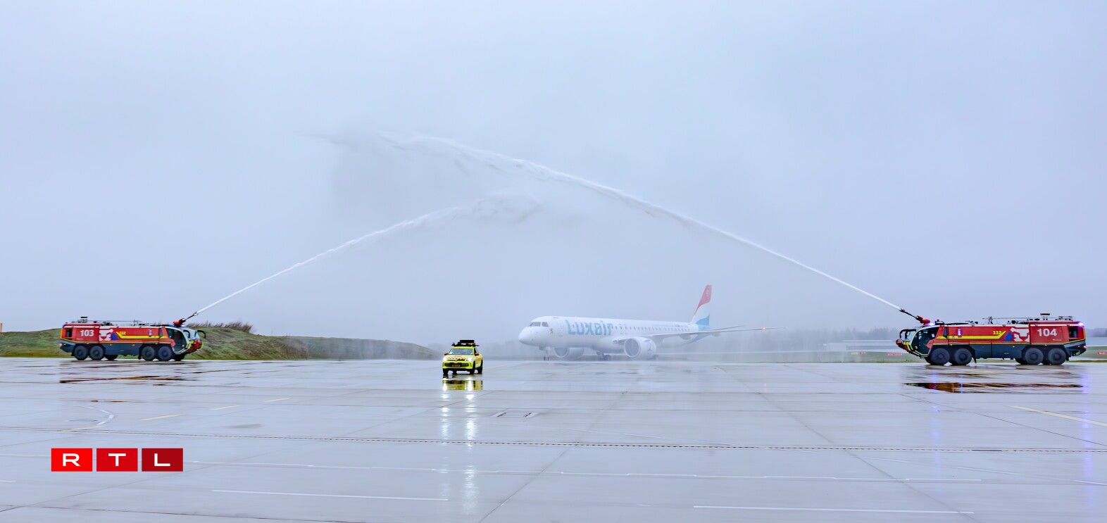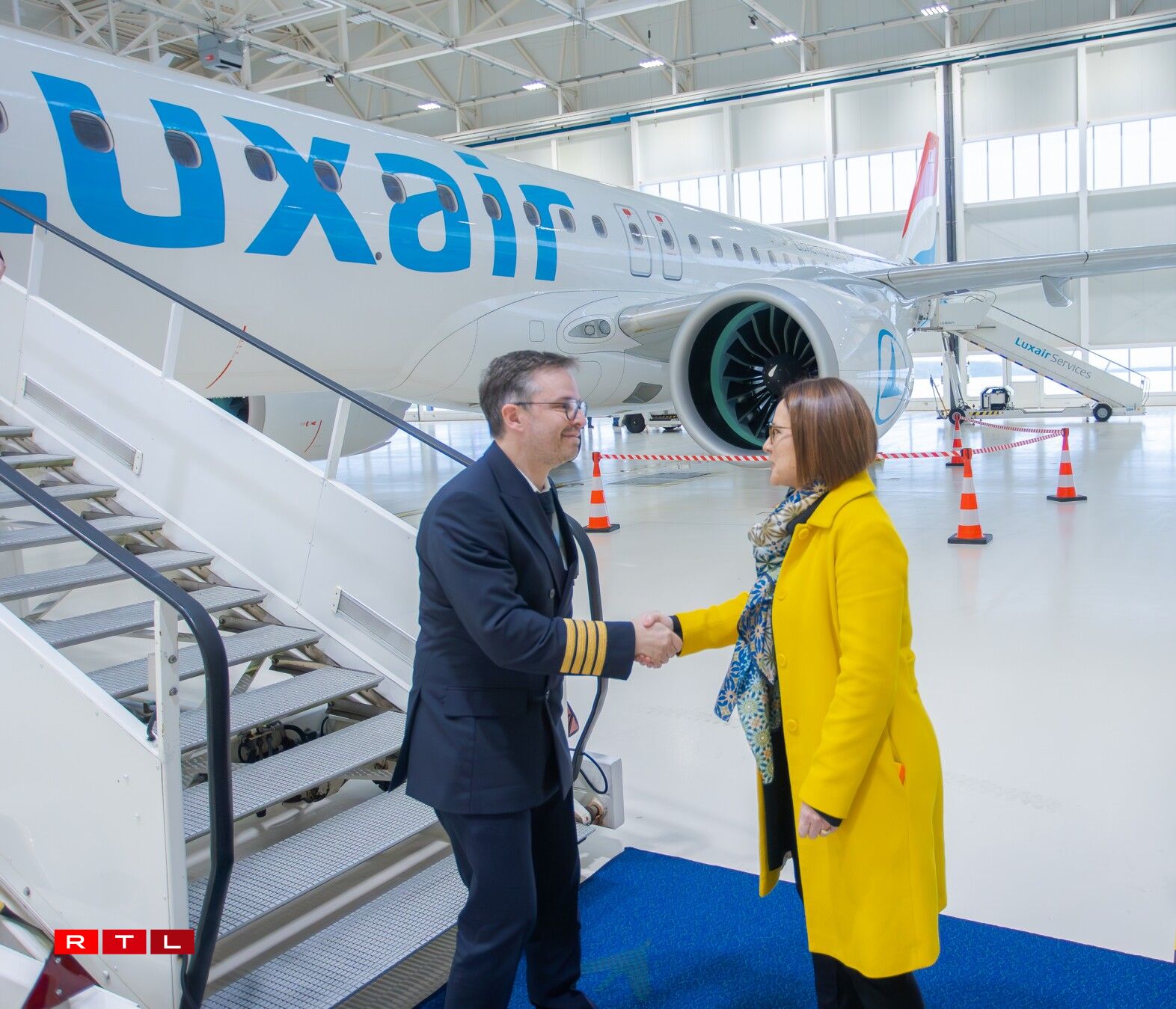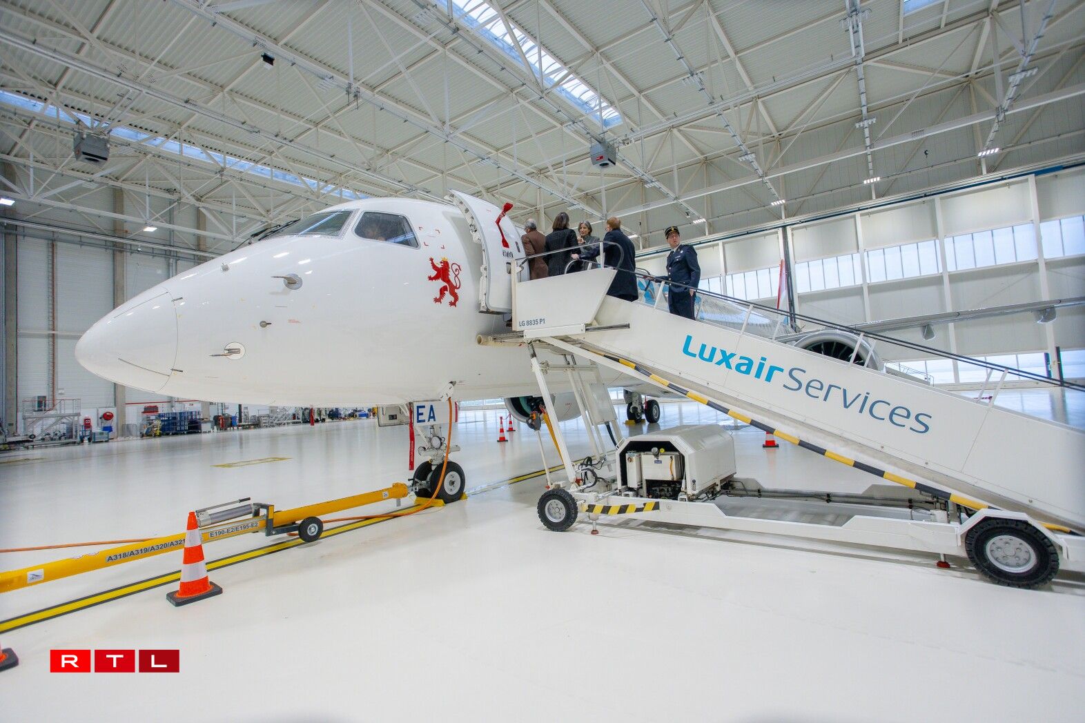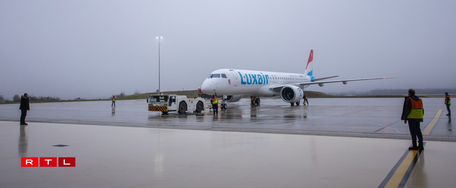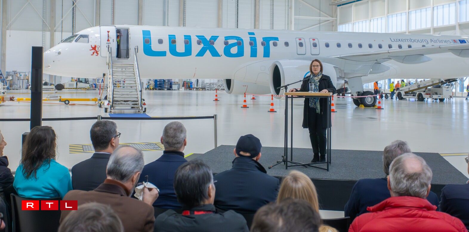 Den éischte vun am Ganze 6 nei-bestallte Fligeren ass dëse Samschdeg zu Lëtzebuerg ukommen. Empfaange gouf den neien E195-E2-Fliger a Presenz vun der Mobilitéitsministesch Yuriko Backes. Ufank 2026 soll d’Maschinn an de reguläre Betrib goen.