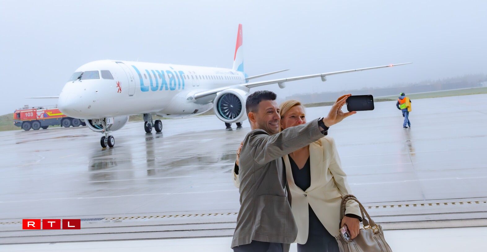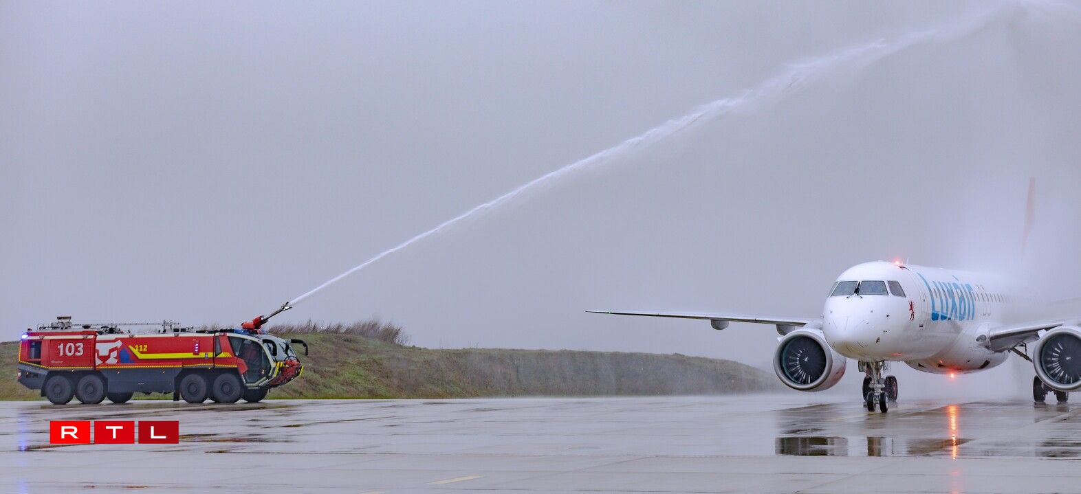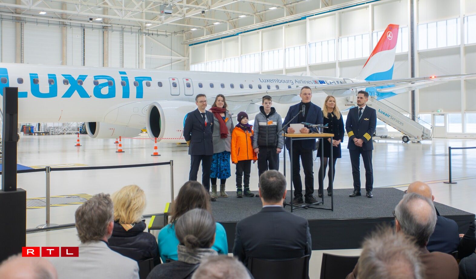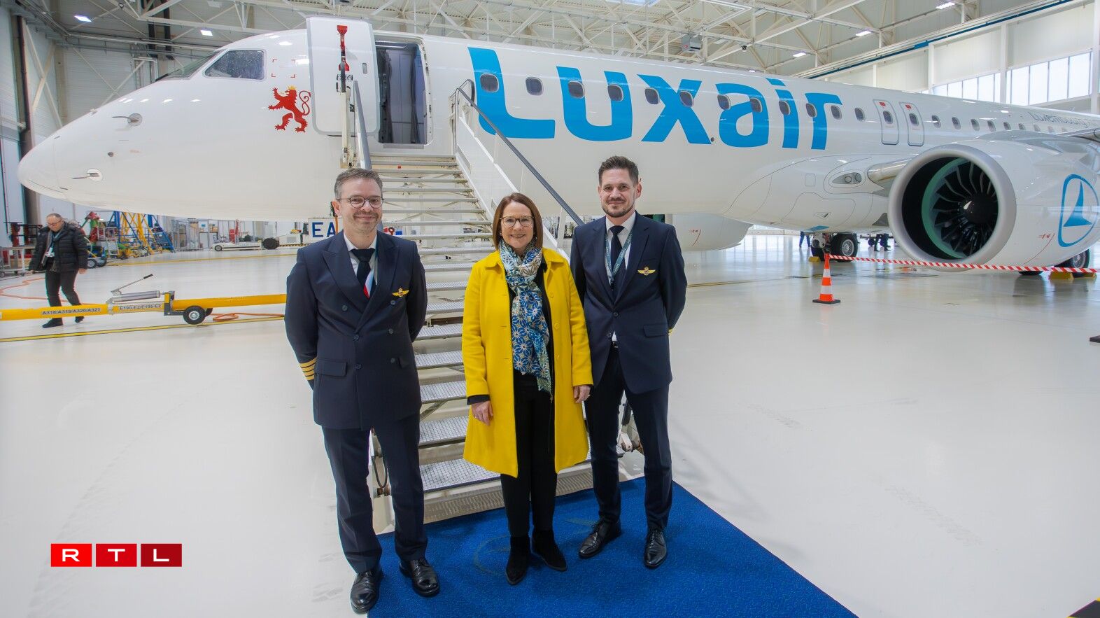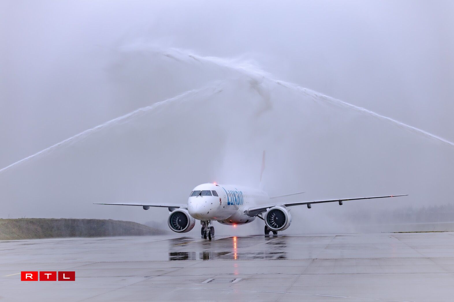 Den éischte vun am Ganze 6 nei-bestallte Fligeren ass dëse Samschdeg zu Lëtzebuerg ukommen. Empfaange gouf den neien E195-E2-Fliger a Presenz vun der Mobilitéitsministesch Yuriko Backes. Ufank 2026 soll d’Maschinn an de reguläre Betrib goen.