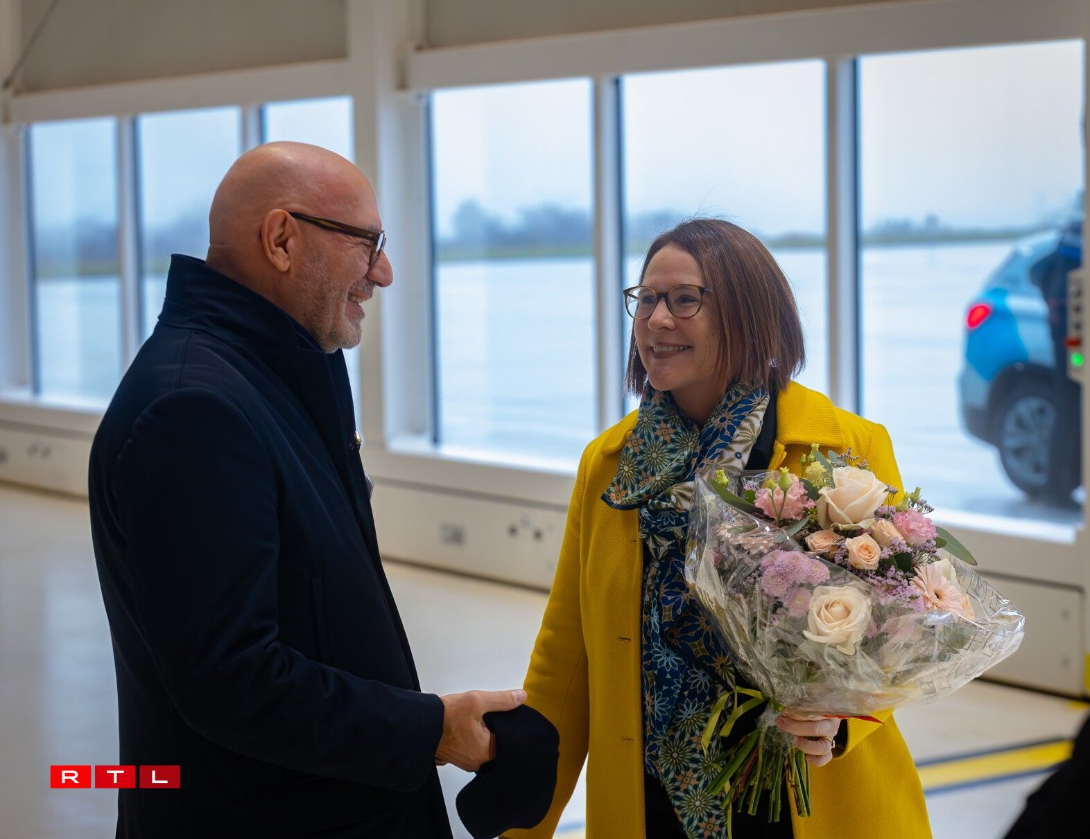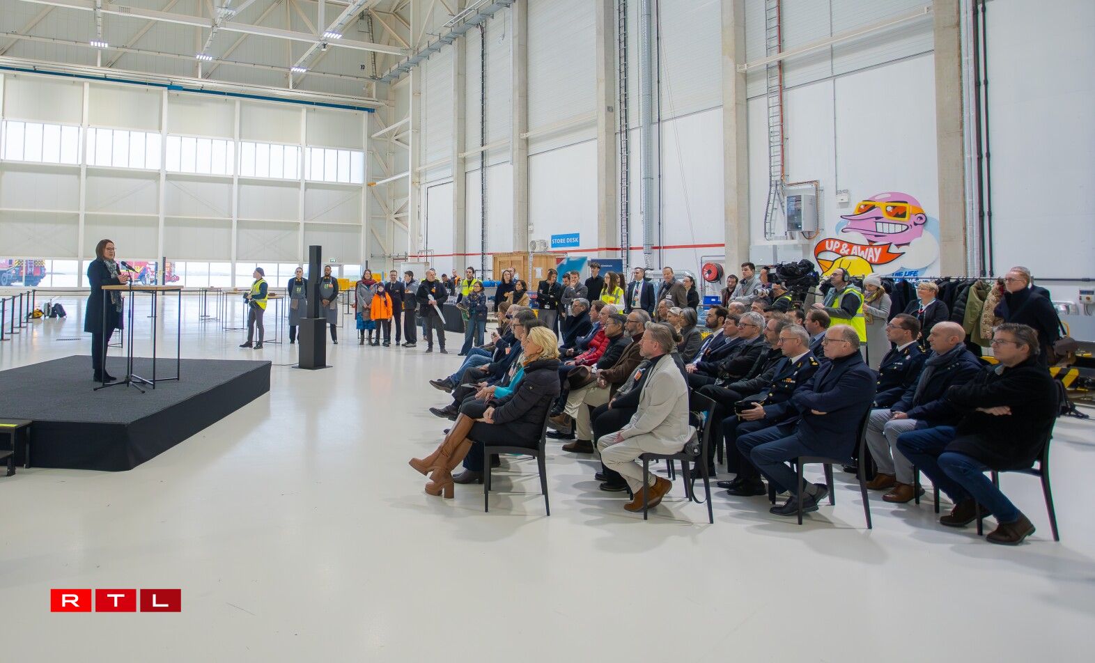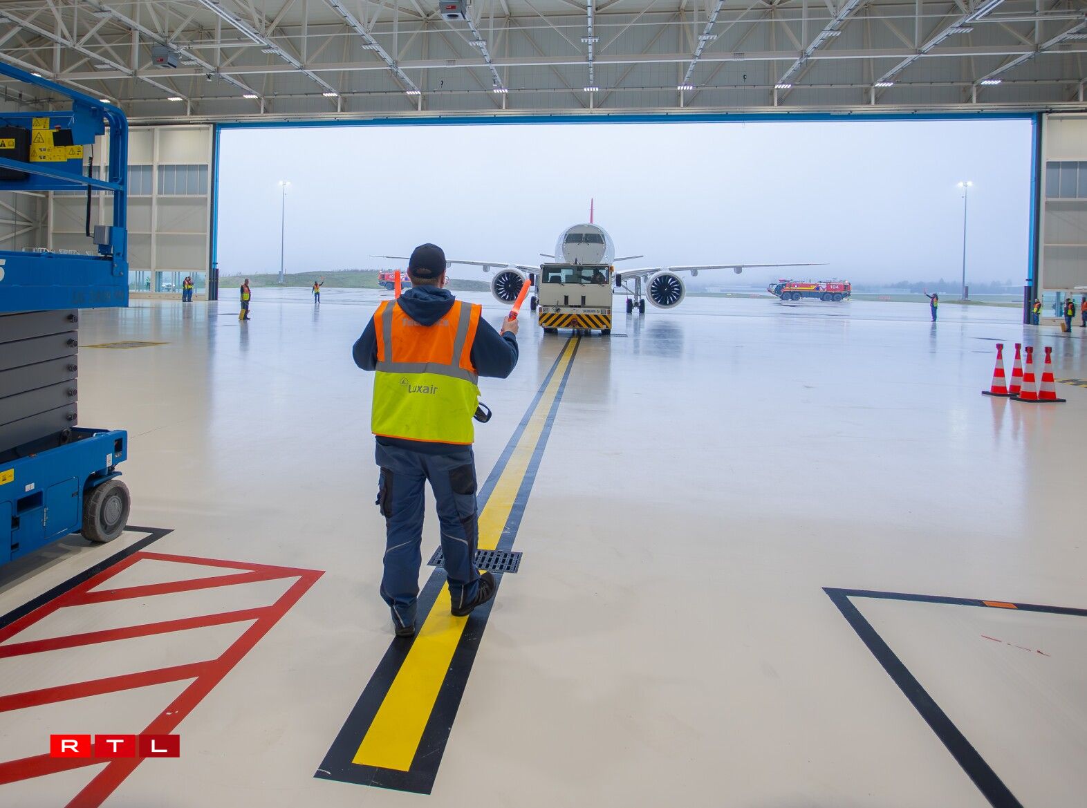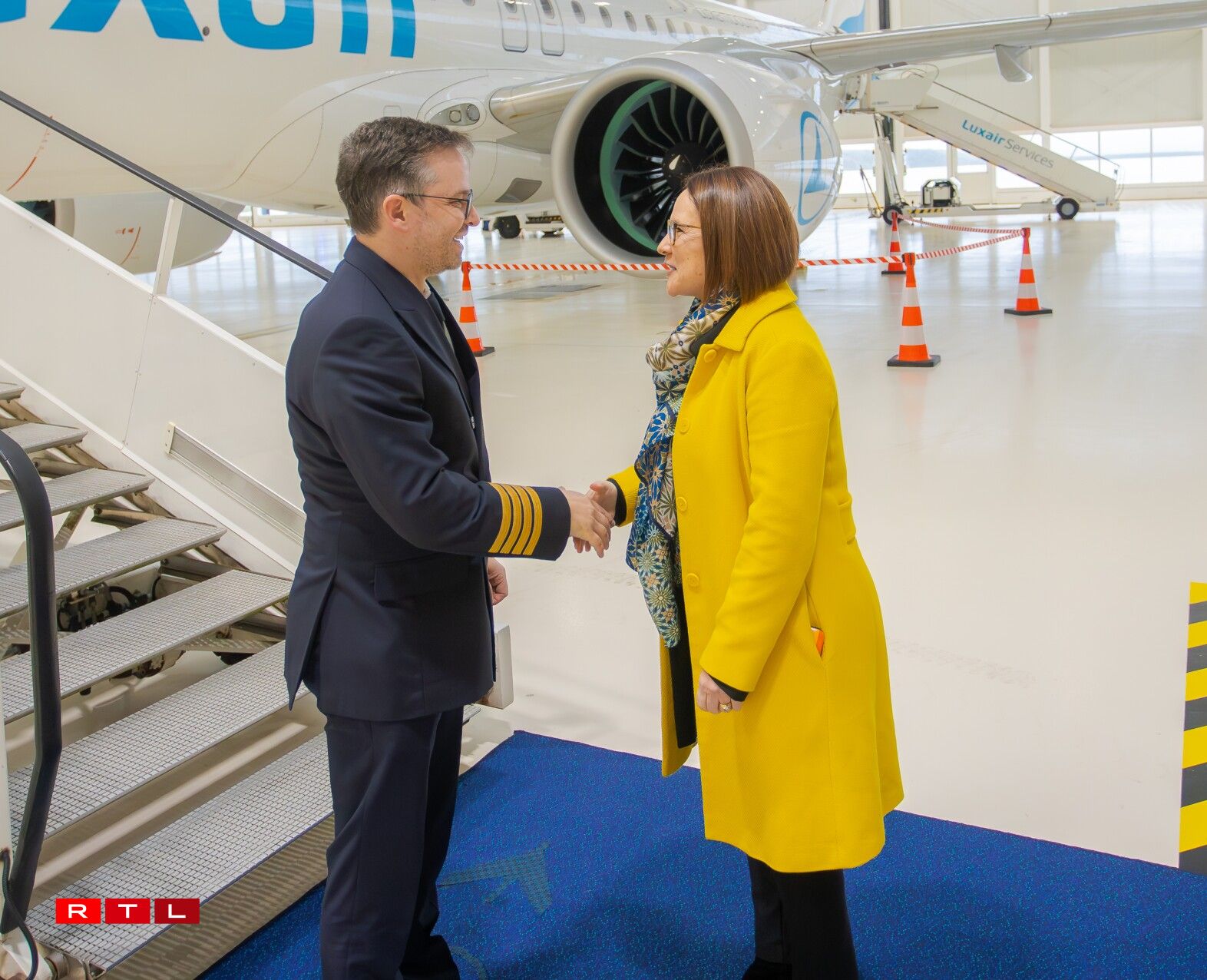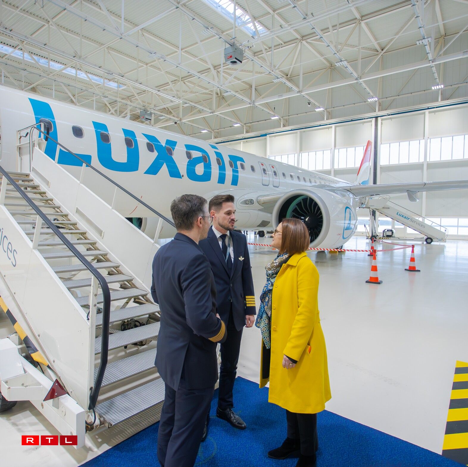 Den éischte vun am Ganze 6 nei-bestallte Fligeren ass dëse Samschdeg zu Lëtzebuerg ukommen. Empfaange gouf den neien E195-E2-Fliger a Presenz vun der Mobilitéitsministesch Yuriko Backes. Ufank 2026 soll d’Maschinn an de reguläre Betrib goen.