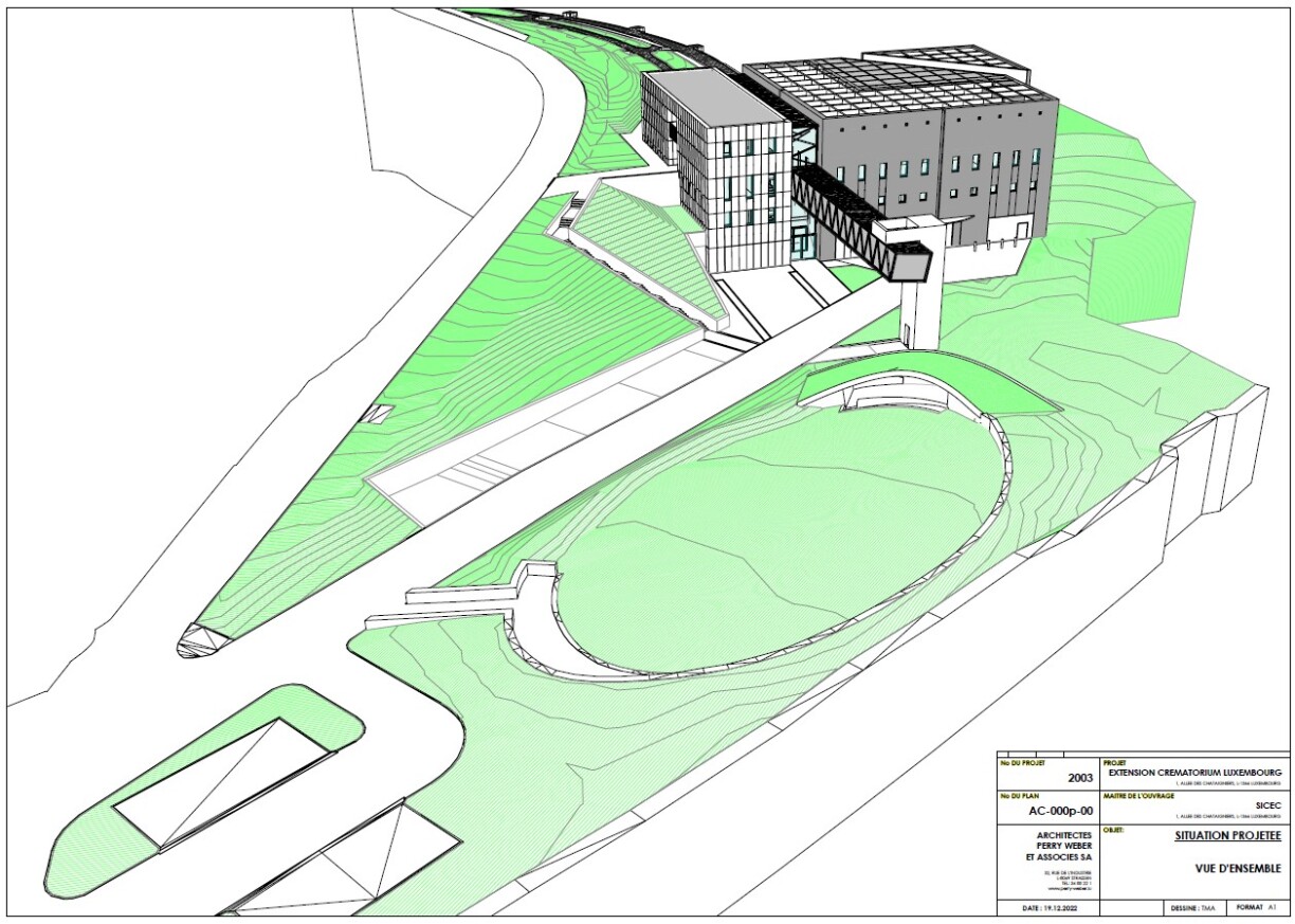 Nieft dem Crematoire zu Hamm entsteet en neit Gebai, dat duerch eng Glaskonstruktioun mat deem ale Gebai verbonne gëtt. Eng Passerell aus Glas wäert da bei eng vun de Streewise féieren.