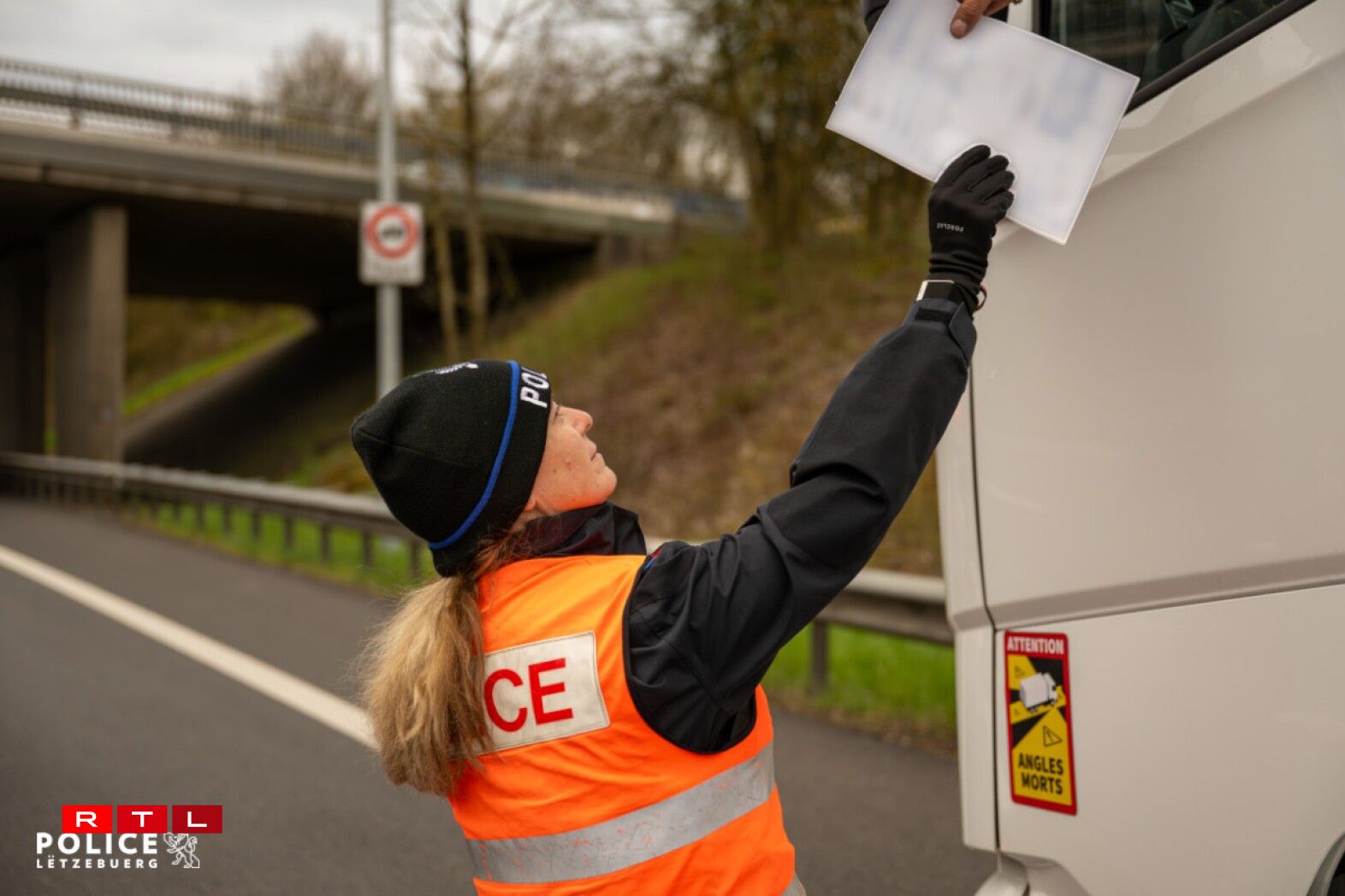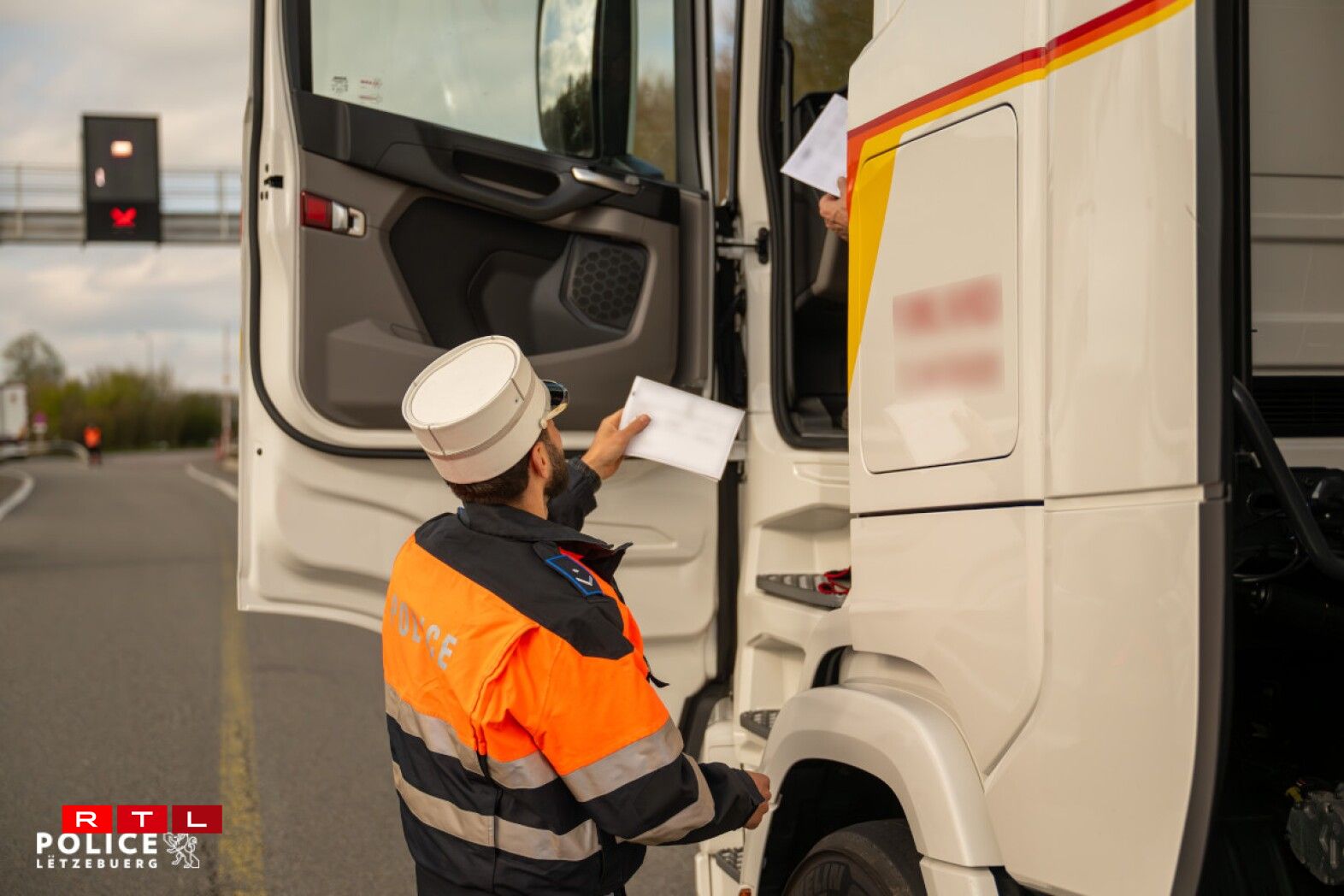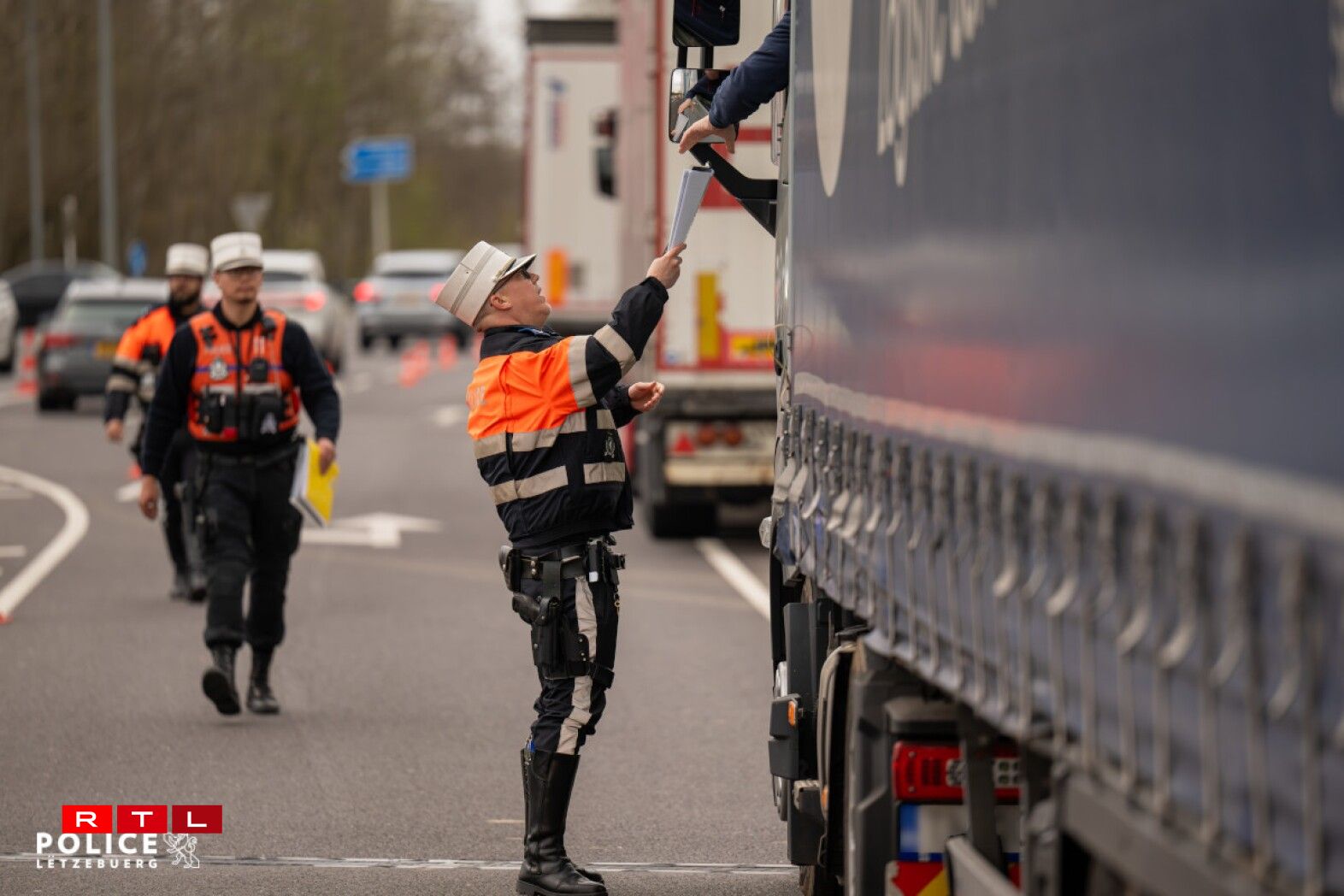 Den 3. Abrëll huet d’Police op der A6 an der A3 kontrolléiert, ob d’Camionschauffere sech un d’Restriktioune fir d’Feierdeeg halen.