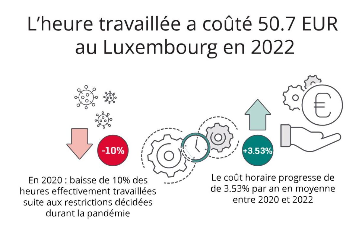 Dat schreift de Statec en Dënschdeg an enger neier Publikatioun. Tëschent 2016 an 2020 sinn d’Käschten an der Moyenne ëm gutt 5 Prozent d’Joer geklommen. Wärend der Pandemie sinn d’Stonnen, an deenen effektiv geschafft gouf, ëm 10 Prozent erofgaangen. Dofir ass eng Stonn Aarbecht tëscht 2020 an zejoert ëm gutt 3,5 Prozent méi deier ginn.