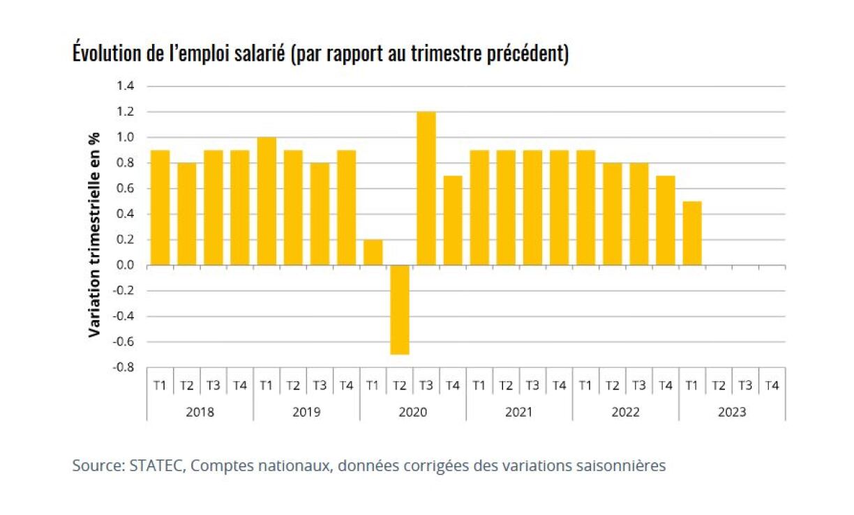 Am meeschte gewuess bei der Main d’oeuve ass am éischten Trimester dëst Joer iwwerdeems mat engem Plus vun 3,9 Prozent de Finanz- an Assurancësecteur.