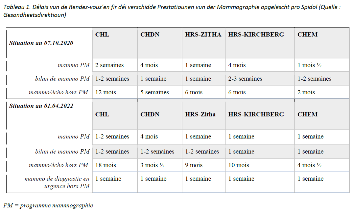 Am nationale Preventiounprogramm fir Fraen iwwer 50 kënnt ee vill méi séier un d’Rei. Urgencen, wou et Symptomer ginn, kréichen och ëmmer e Rendez-vous bannent maximal zwou Wochen, preziséiert d’Ministesch.