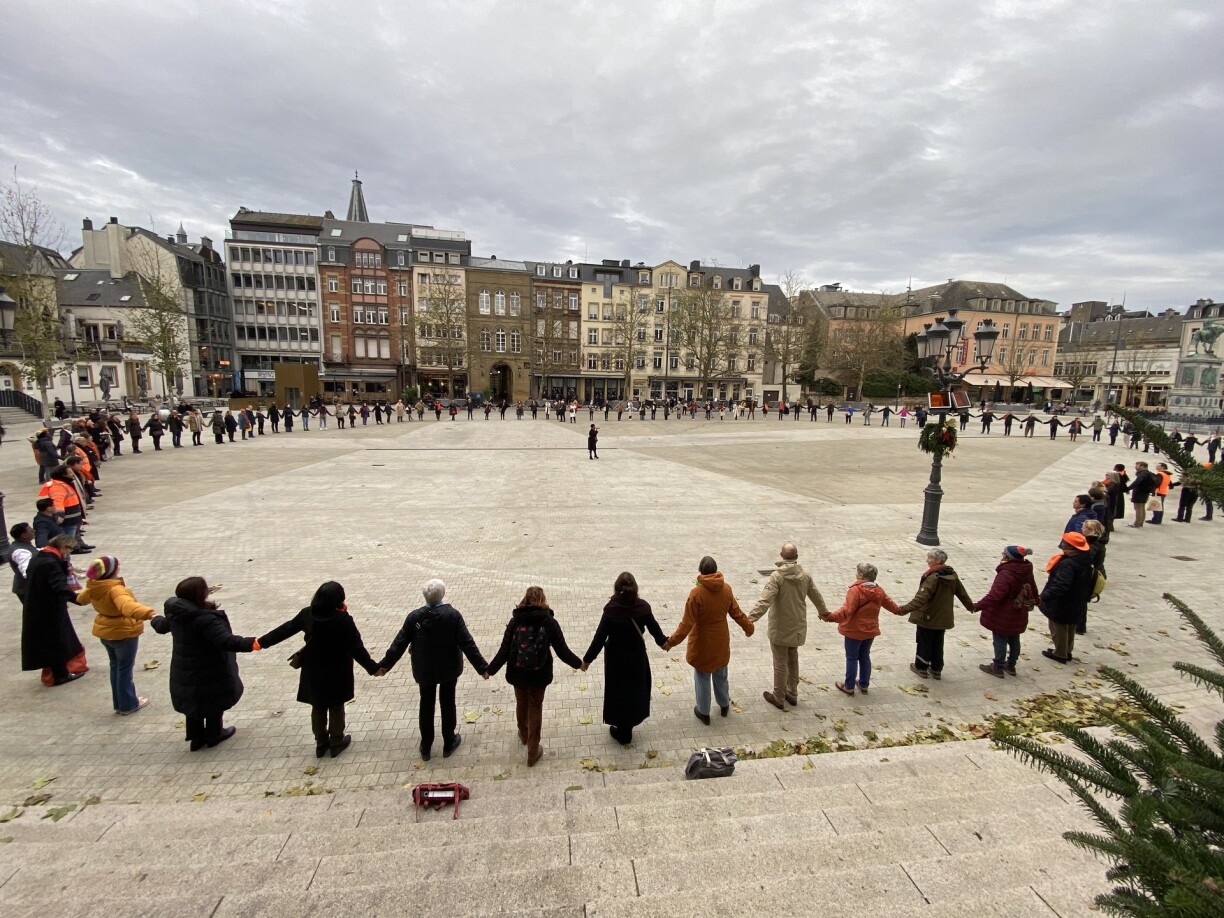Eng 120 Fraen a Männer aus der Zivilgesellschaft wéi och der Politik hu sech iwwer d‘Mëttegstonn an der Stad versammelt, fir eng Mënscheketten ze forméieren, fir un d‘Fraen, déi Affer vun haislecher Gewalt goufen, ze erënneren. Der UN no erlieft all drëtt Fra kierperlech oder sexuell Gewalt an hirem Liewen, wat et zu enge vun den heefegste Forme vu Mënscherechtsverletzunge weltwäit mécht.