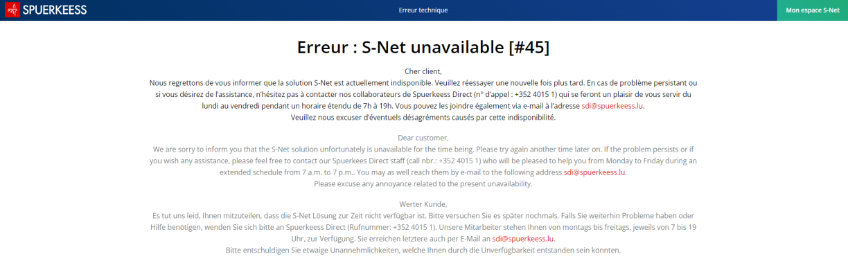 D’Spuerkeess hat um Méindeg de Moien Nouvellë confirméiert, déi mer vun den RTL-User gemellt kruten. D’Bank huet sech bei hire Clienten entschëllegt. Op d’Ursaache vum Probleem ass d’Spuerkeess net agaangen.