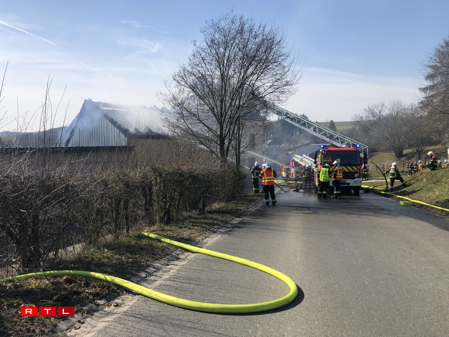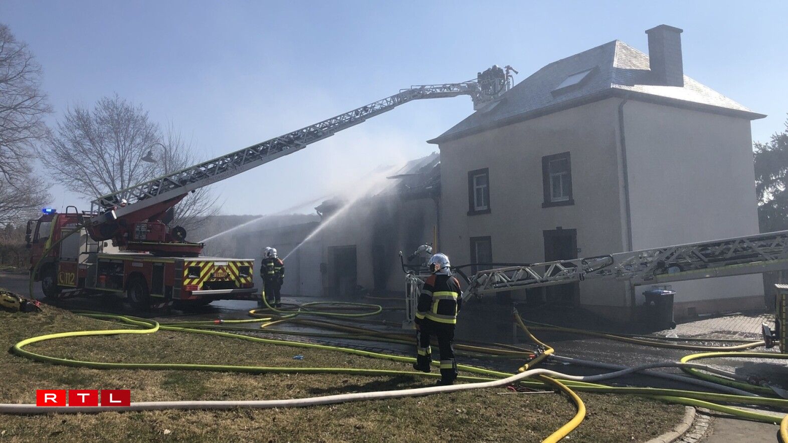 D'Pompjeeë goufen e Freideg an der Mëttesstonn op Ueschdref geruff, well do en Haus a Flame stoung.