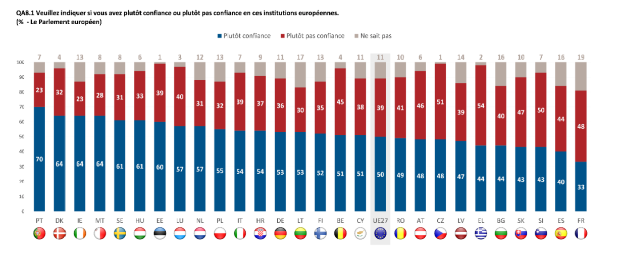 D’allgemengt Vertrauen an d’EU hätt iwwerdeems gelidden, esou den Tommy Klein vum TNS-Ilres. Nëmmen 43 Prozent hunn deemno uginn, dass si Vertrauen an d’Unioun hätten, dat warscheinlech wéinst der Pandemie-Gestioun vun deenen eenzele Memberstaaten. Trotzdeem wier dëse Vertrauensverloscht ze relativéieren, 93 % vun de Leit wiere beispillsweis fir fräi Zirkulatioun an der EU, iwwer 70% géinge sech attachéiert un d’EU fillen an iwwer 65% géinge soen, dass Lëtzebuerg net besser dru wier ouni d’Unioun.