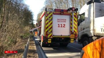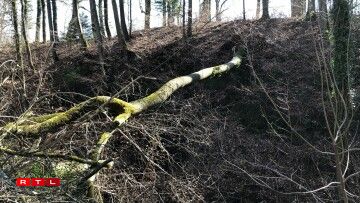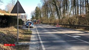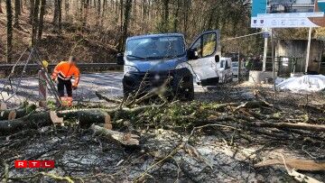 D’Strooss war blockéiert an huet musse gespaart ginn, fir dass de Bam konnt zerschnidden an ewechgeraumt ginn. D’Camionnette gouf liicht getraff, de Chauffer stoung ënner Schock.
