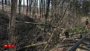 Tëscht Miersch an Angelsbierg ass um Dënschdeg de Moien e ganz grousse Bam laanscht d'Strooss ëmgefall a bal op en Aarbechter gefall.