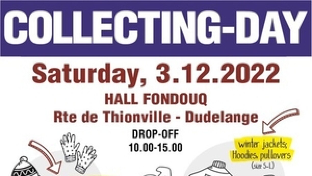 Et gi just geziilt déi Saache gesammelt, déi um Flyer ze gesi sinn. Wien deen Dag net op Diddeleng komme kann, kann d’Géigestänn och am Virfeld zu Dikrech oder zu Diddeleng op den Drop-off-Adressen ofginn.