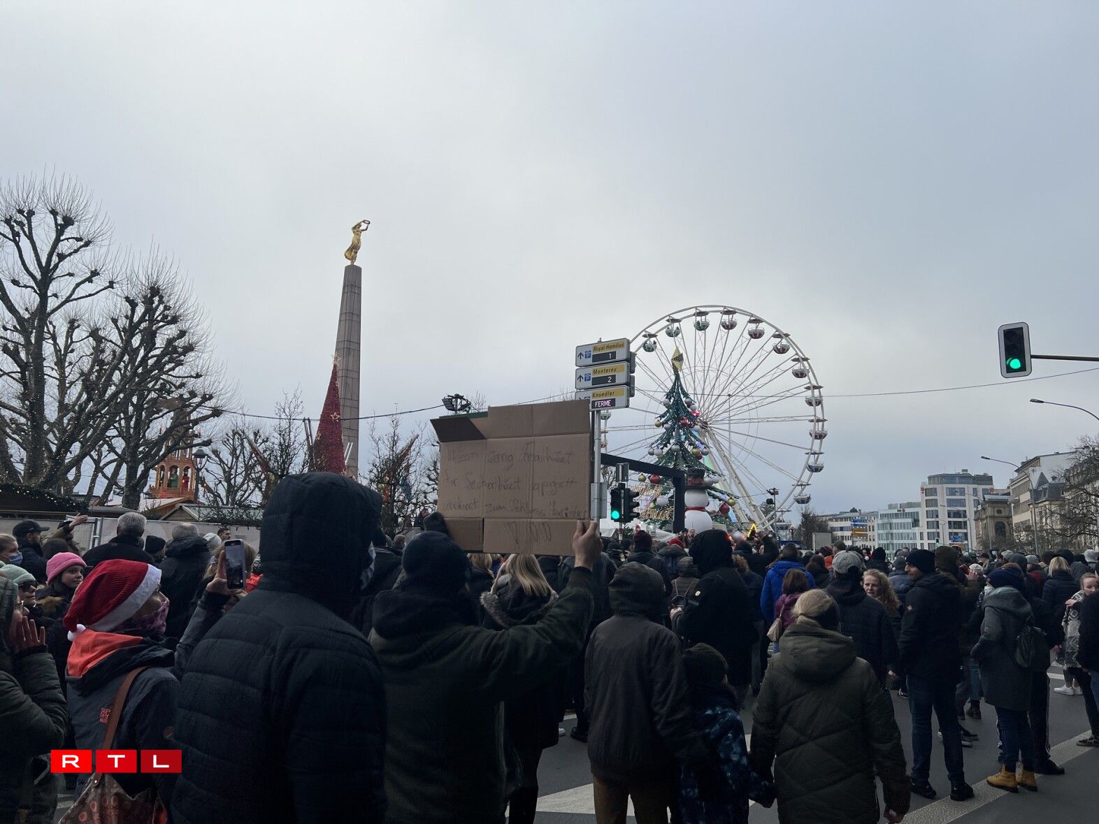 Der Police no war ee klenge Grupp vu Leit um Glacis zesummekomm fir géint d’Covidreegelen ze manifestéieren.
