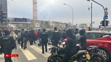 6 Persoune goufe festgeholl. Zwee, wéi e klenge Grupp vu Manifestanten um Boulevard Royal probéiert huet, fir d’Ofspärungen a Richtung Foussgängerzone ze duerchbriechen.