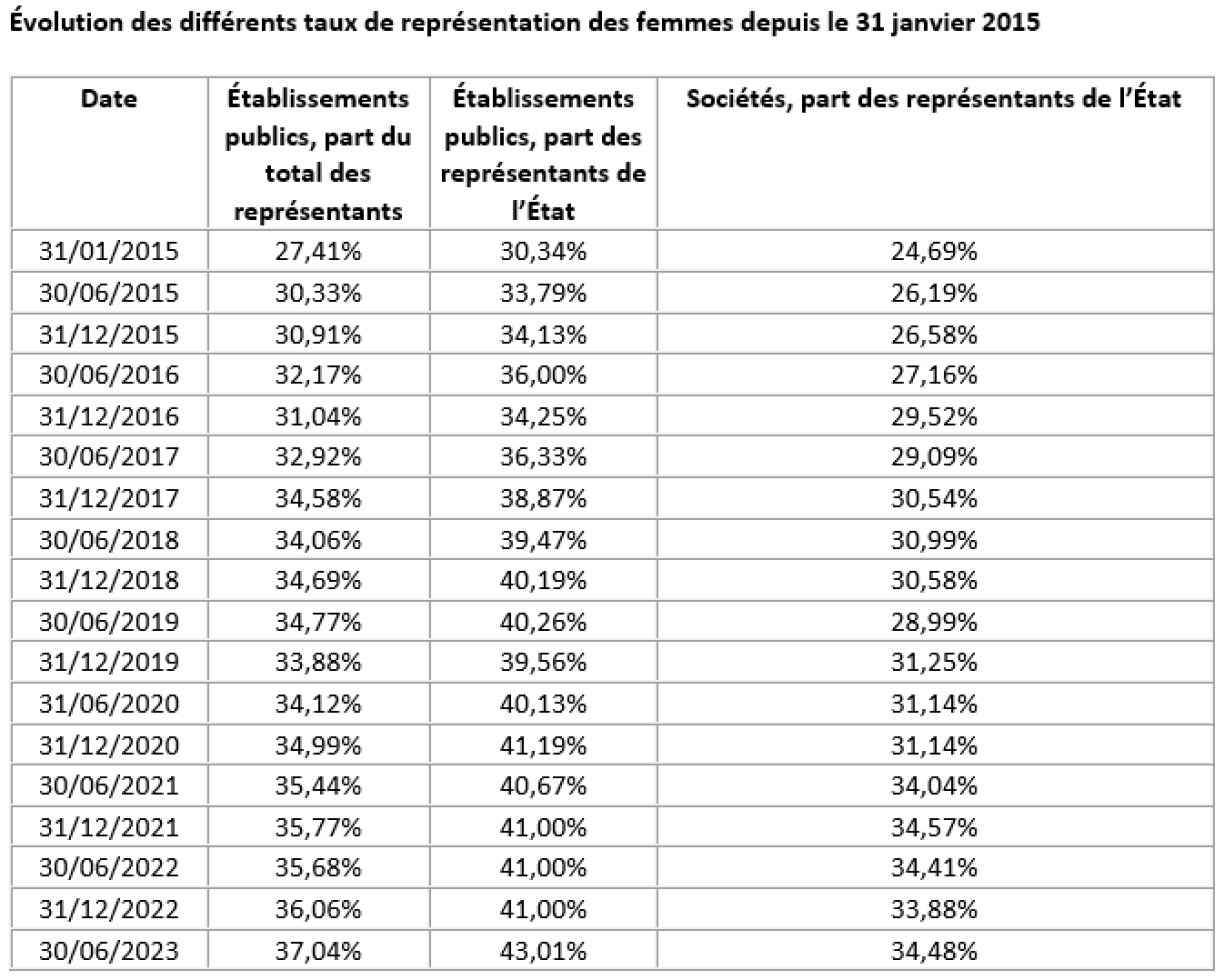 D’Zuel vun de Fraen, déi de Staat an dëse Verwaltungsréit vertrieden, ass iwwerdeems vun 30 op haut 43 Prozent geklommen. Bei privaten Entreprisen gëtt de Staat an Tëscht vu 34 Prozent Frae vertrueden. Dës Zuele liwweren d’Ministere Bofferding a Fayot um Freideg.