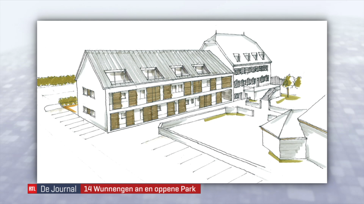 Am Plaz vun der aler Scheier entsteet deemno e neit Gebai, dat Plaz fir 14 Wunnengen baut - Bauhär ass de Fonds du Logement.