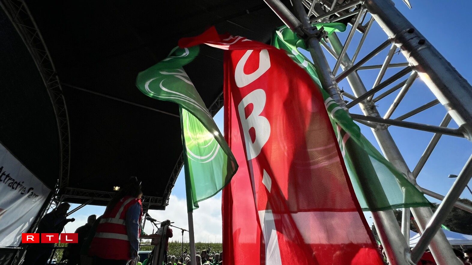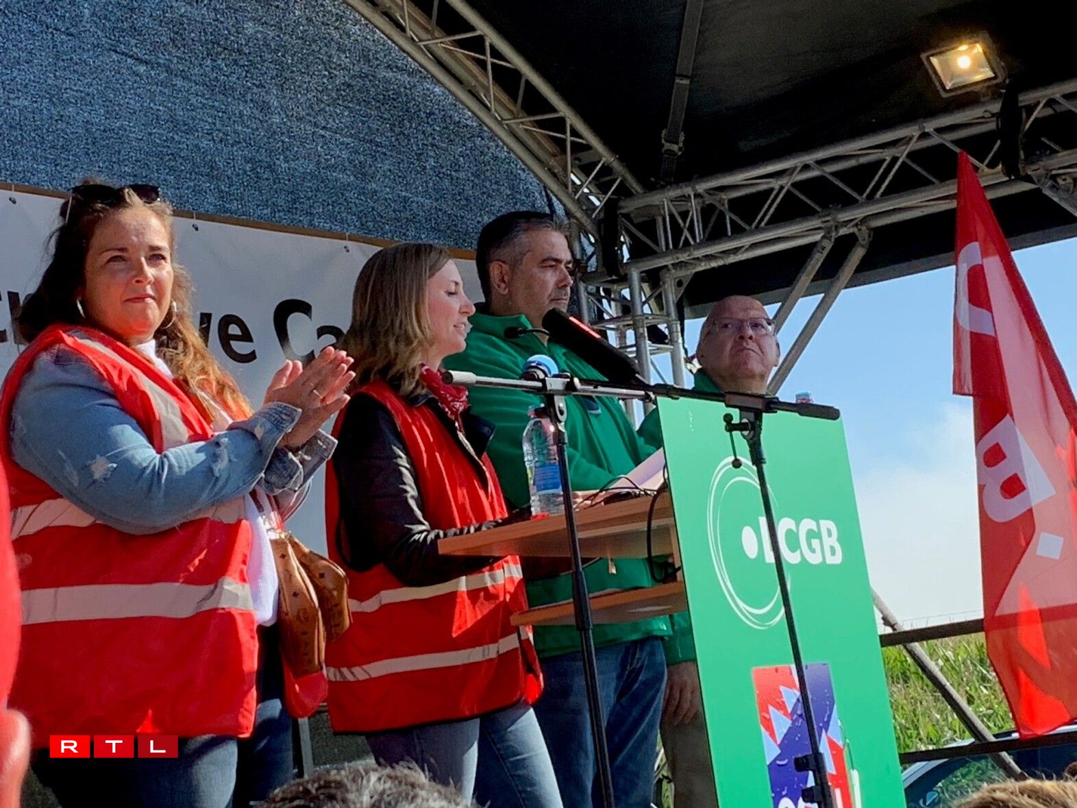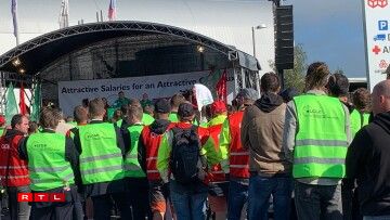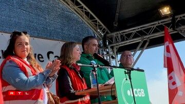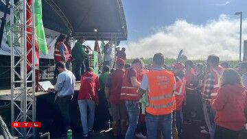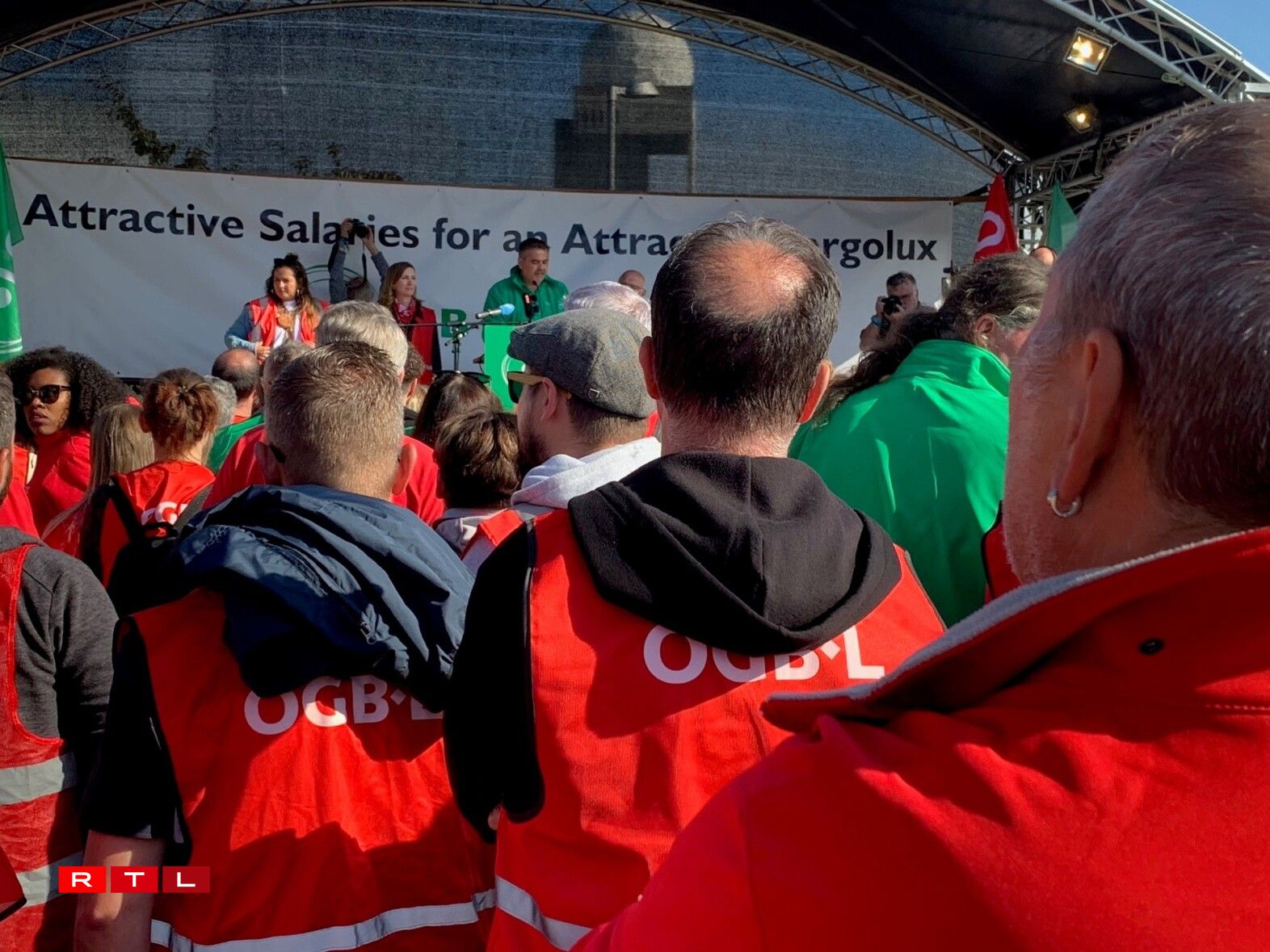 Virum Siège beim Rond-point Sandweiler huet d’Personal gewisen, dass een hannert de Gewerkschaften LCGB an OGBL steet. Et waren ëm déi 700 Leit virum Sëtz vun der Cargolux. Quasi paritéitesch mat grénge Gilete fir den LCGB, respektiv roude fir den OGBL.