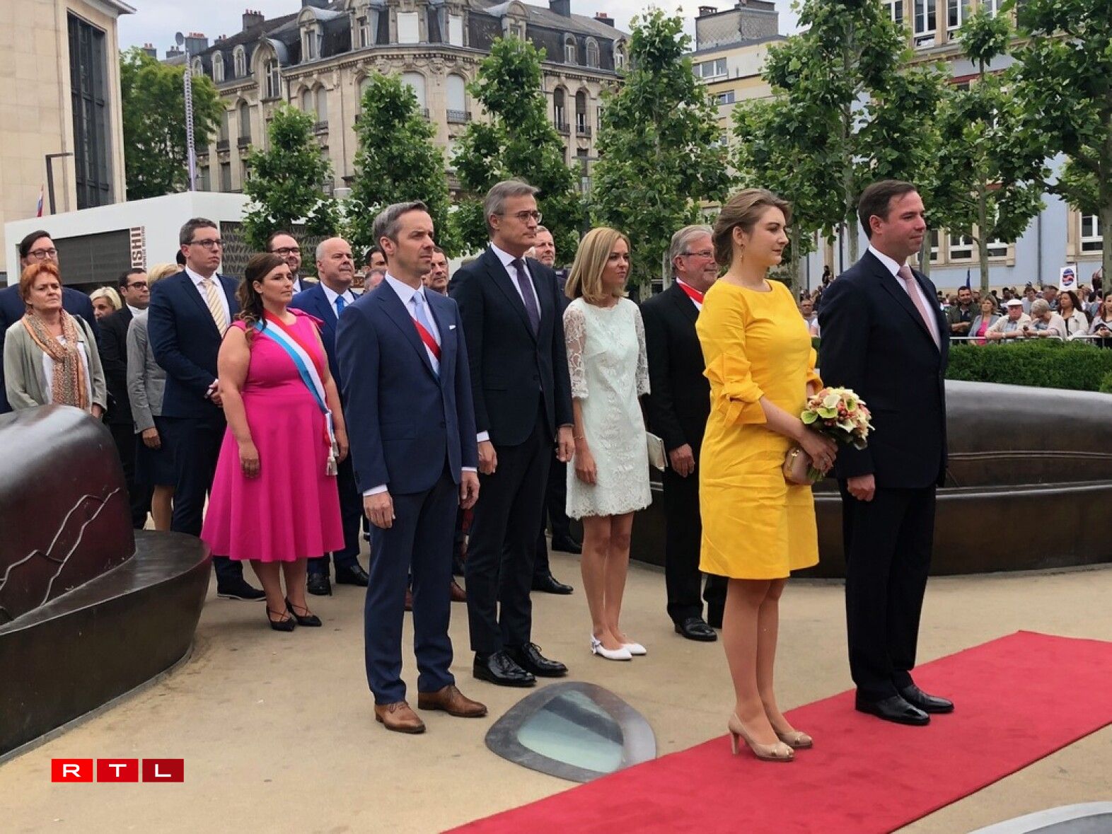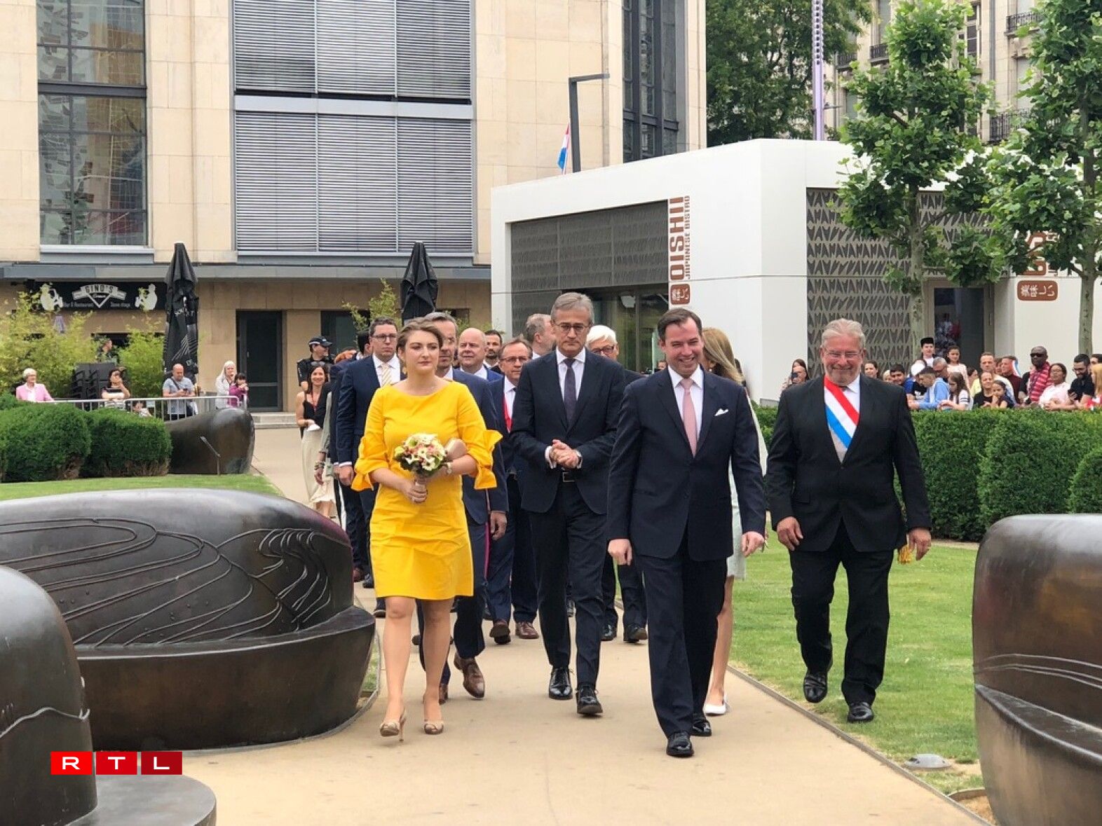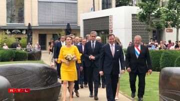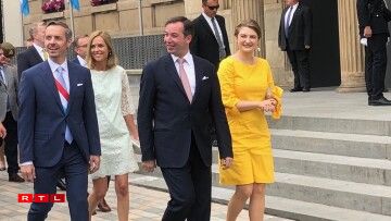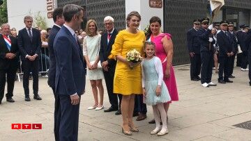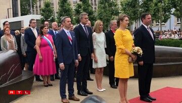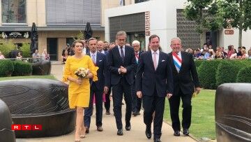 Den Ierfgroussherzog Guillaume an seng Fra Stéphanie waren dann um Virowend vum Nationalfeierdag traditionell zu Esch.