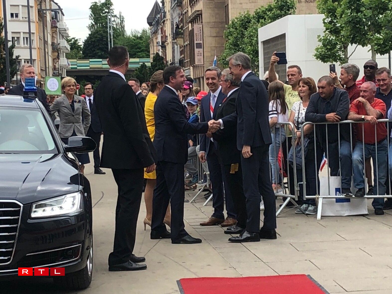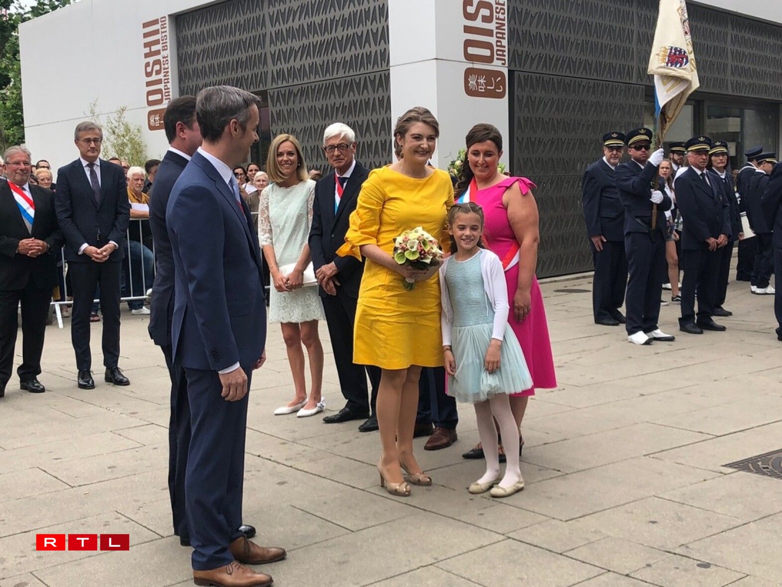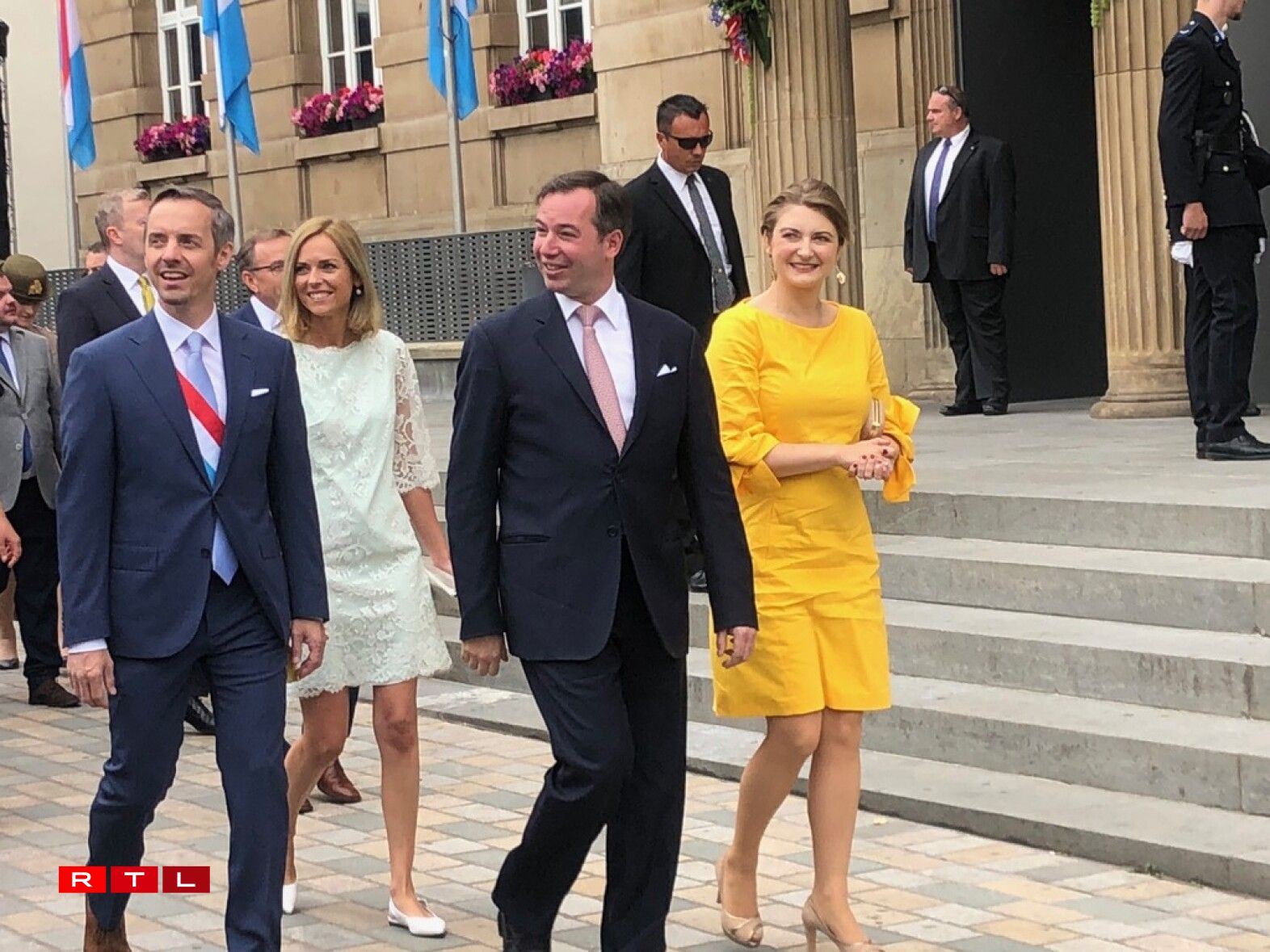 Den Ierfgroussherzog Guillaume an seng Fra Stéphanie waren dann um Virowend vum Nationalfeierdag traditionell zu Esch.