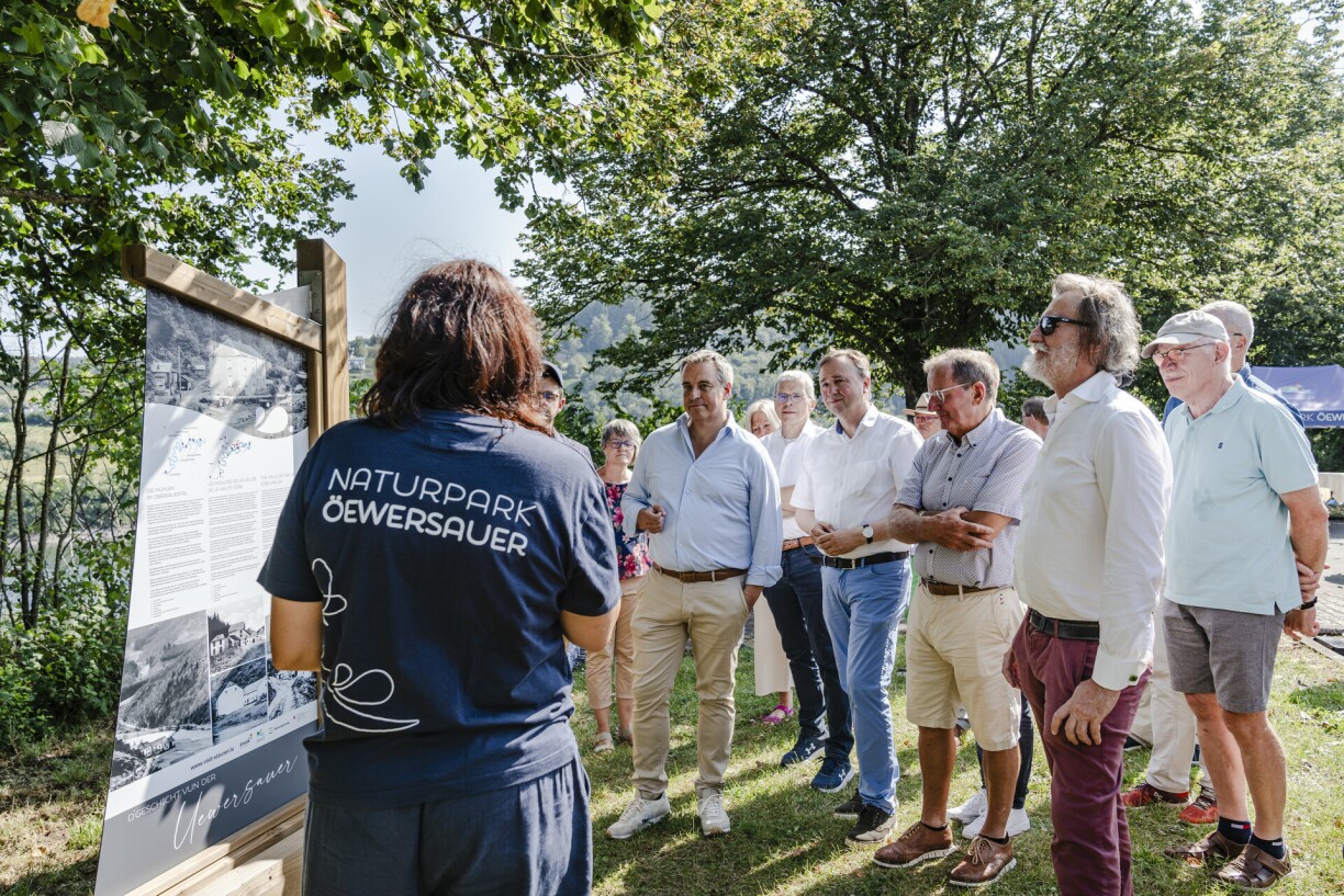 “Dat, wat mer am Fong hei mat de Panneauen elo gemaach hunn, ass am Fong d’Geschicht vun der Uewersauer opzeschaffen an do fënnt een ebe vill Elementer erëm, dat kulturellt Liewen, dat hei stattfonnt huet, d’Kultur, déi awer och zum Deel, d’Kulturierwe verschwonnen ass, an anert Naturliewe wat entstanen ass, wou eng Flora a Fauna sech entwéckelt huet, well ebe lo hei den Niveau erop- an erofgeet vum Séi, well dann och eng Mehrzwecktalsperre ass, sou Elektreschproduktioun ass.”