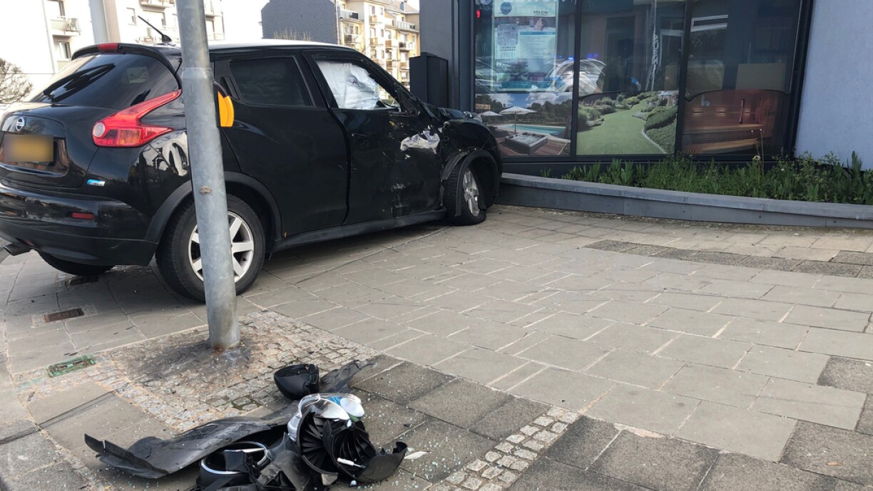 Nodeems béid Gefierer kollidéiert waren, ass den Auto op den Trottoir geschleidert ginn. Glécklecherweis ass beim Accident awer kee Foussgänger blesséiert ginn, och béid Chauffere sinn net verwonnt ginn.