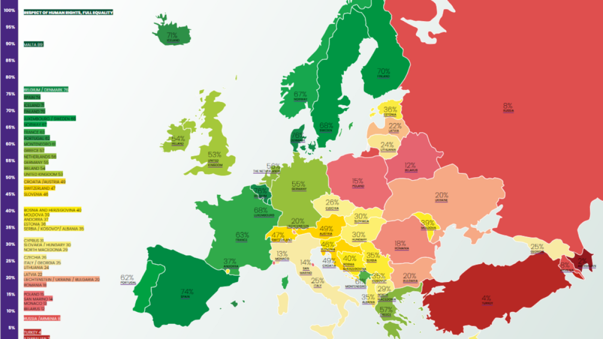 Lëtzebuerg huet keng Fortschrëtter gemaach, wat de Schutz vun de Rechter vu sexuellen a geschlechtleche Minoritéiten ugeet. Am europäesche Ranking verléiert de Grand-Duché zwou weider Plazen an ass elo op Nummer 7. Am Virfeld vum internationalen Dag géint Diskriminatioun vun homosexuellen, bisexuellen, intersex an transgender Persounen d’nächst Woch, huet d’Associatioun ILGA Europe elo hire sougenannte Rainbow Index publizéiert.