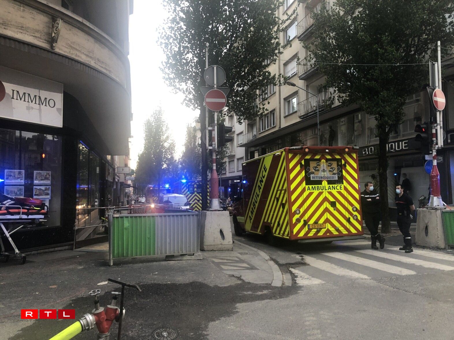 D’Feier war an engem Hannerhaff vun engem Restaurant ausgebrach an et koum zu enger staarker Dampentwécklung.