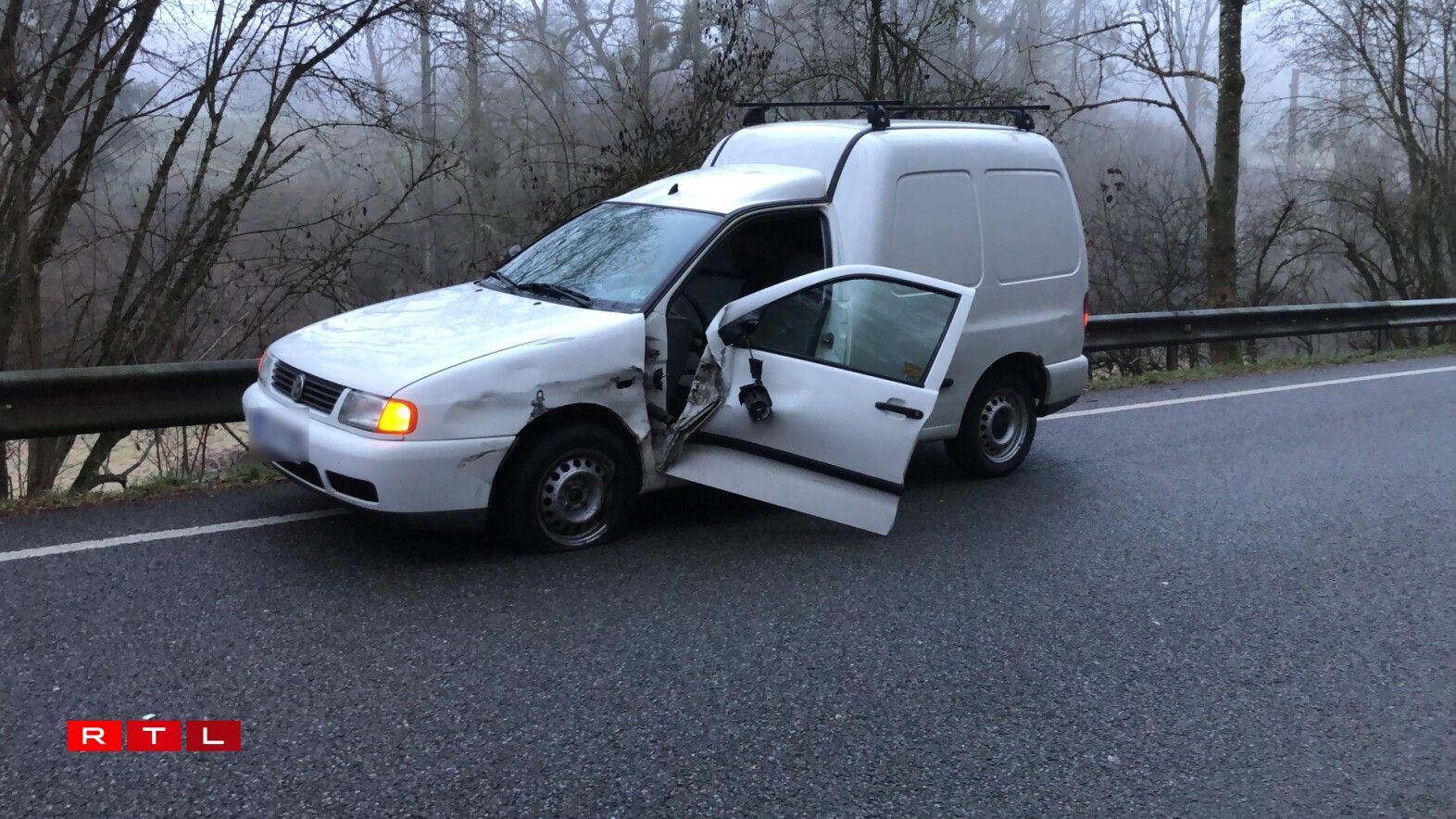 E Méindeg de Moie géint 7.30 Auer sinn um CR118 2 Autoen net laanschtenee komm. Zwou Persoune goufe blesséiert.