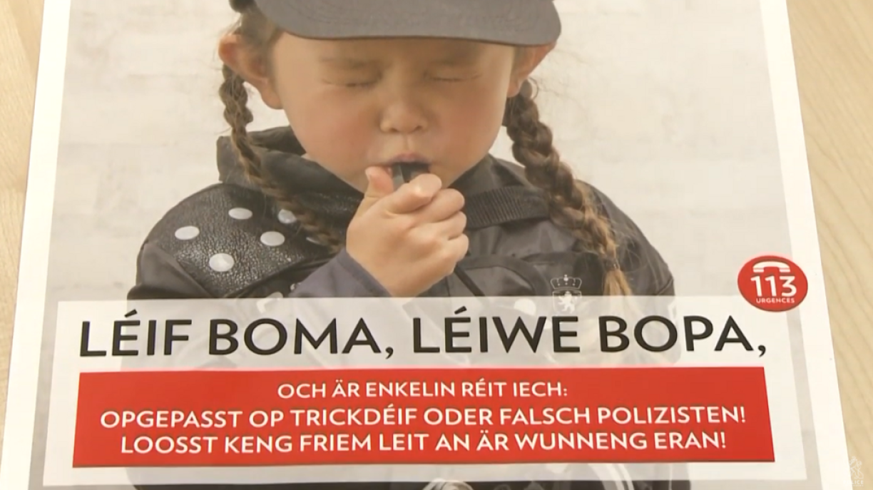 “Léif Boma, léiwe Bopa, Loosst iech net beducksen”. Dat ass den Titel vun enger Sensibiliséierungscampagne, déi et scho viru 4 Joer gouf an déi elo relancéiert gëtt. D’Familljeministesch Corinne Cahen an d’Police hunn en Dënschdeg de Moien betount, datt awer net just eeler Leit ëmmer erëm Affer vu Bedruchsmasche ginn.