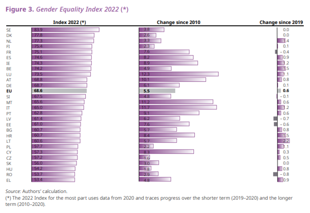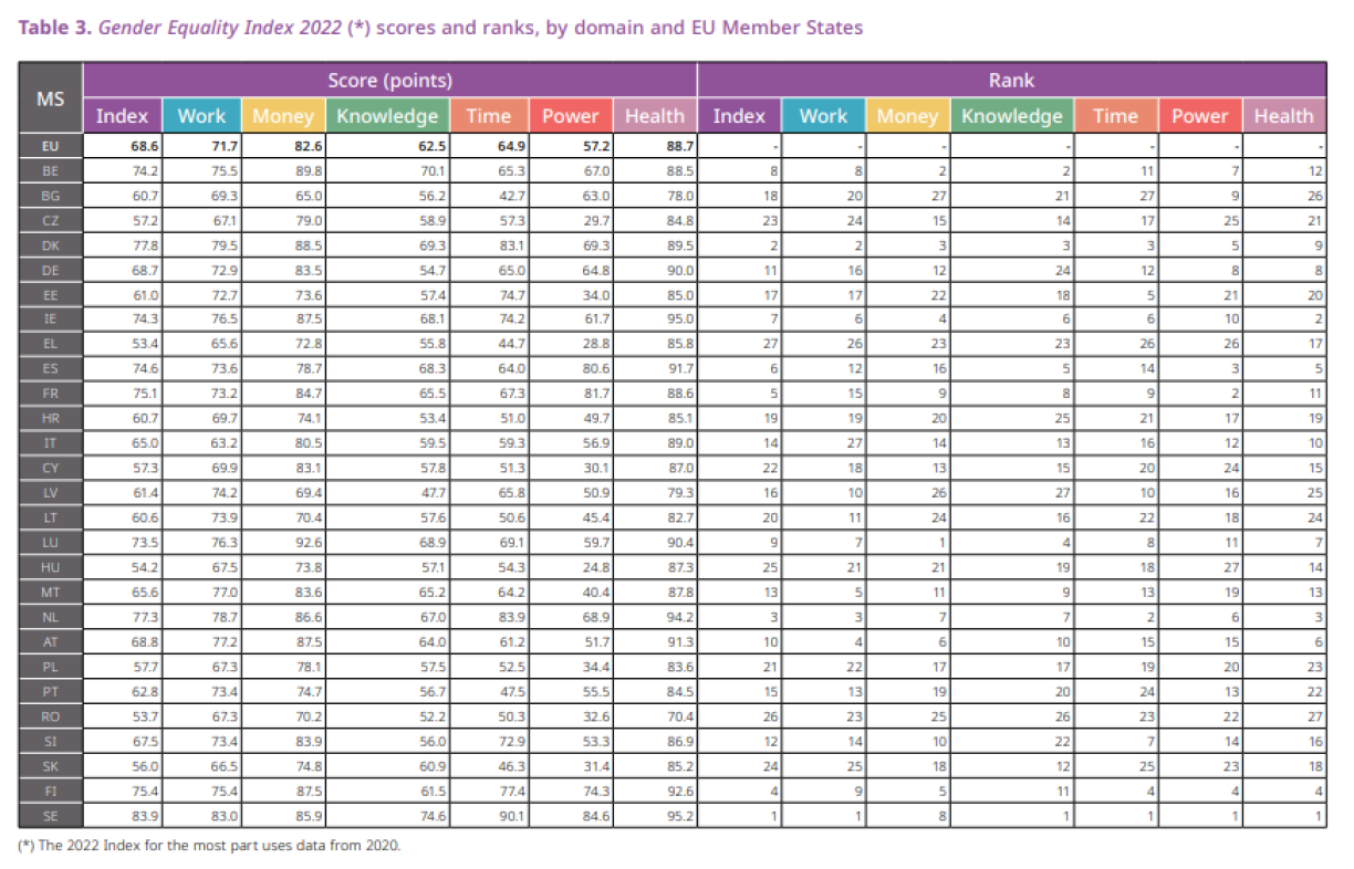 Communiqué par : ministère de l’Égalité entre les femmes et les hommesL’Institut européen pour l’égalité entre les hommes et les femmes (EIGE) a publié les derniers indices d’égalité de genre en date du 24 octobre 2022. L’EIGE mesure cet indice depuis 2010 et c’est le Luxembourg qui a réalisé les progrès les plus importants depuis lors.